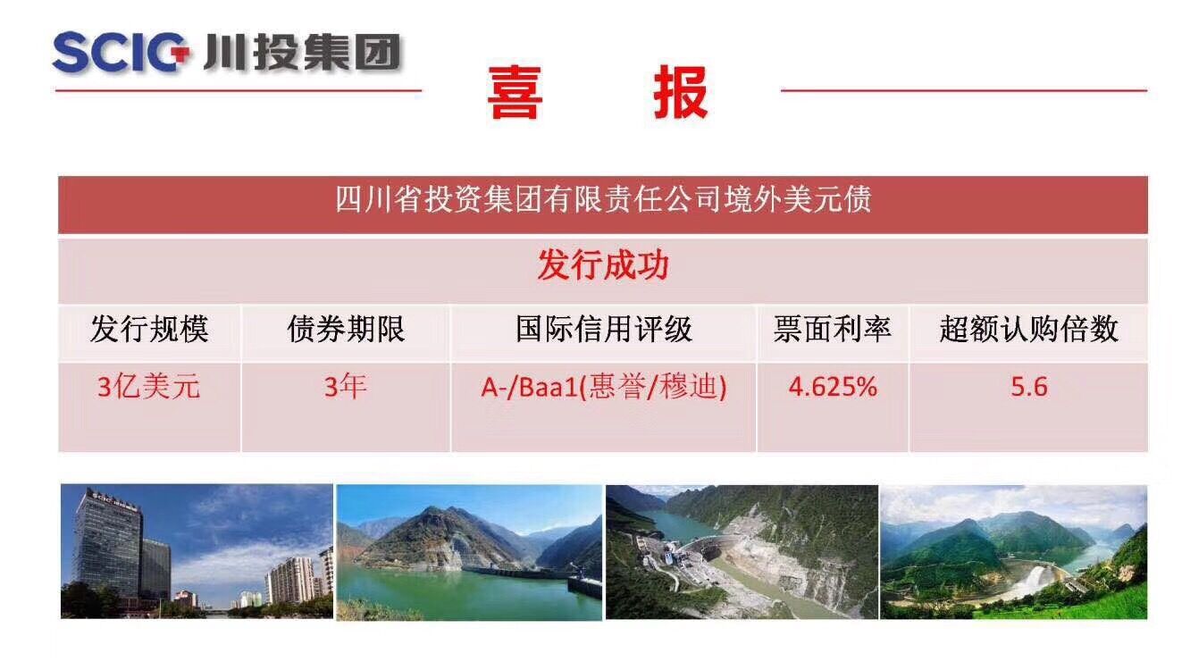 2018年9月18日上午9時(shí),川投集團(tuán)3年期3億美元境外債券宣布正式開簿,這是四川省首單省屬國企海外美元債券公募發(fā)行。