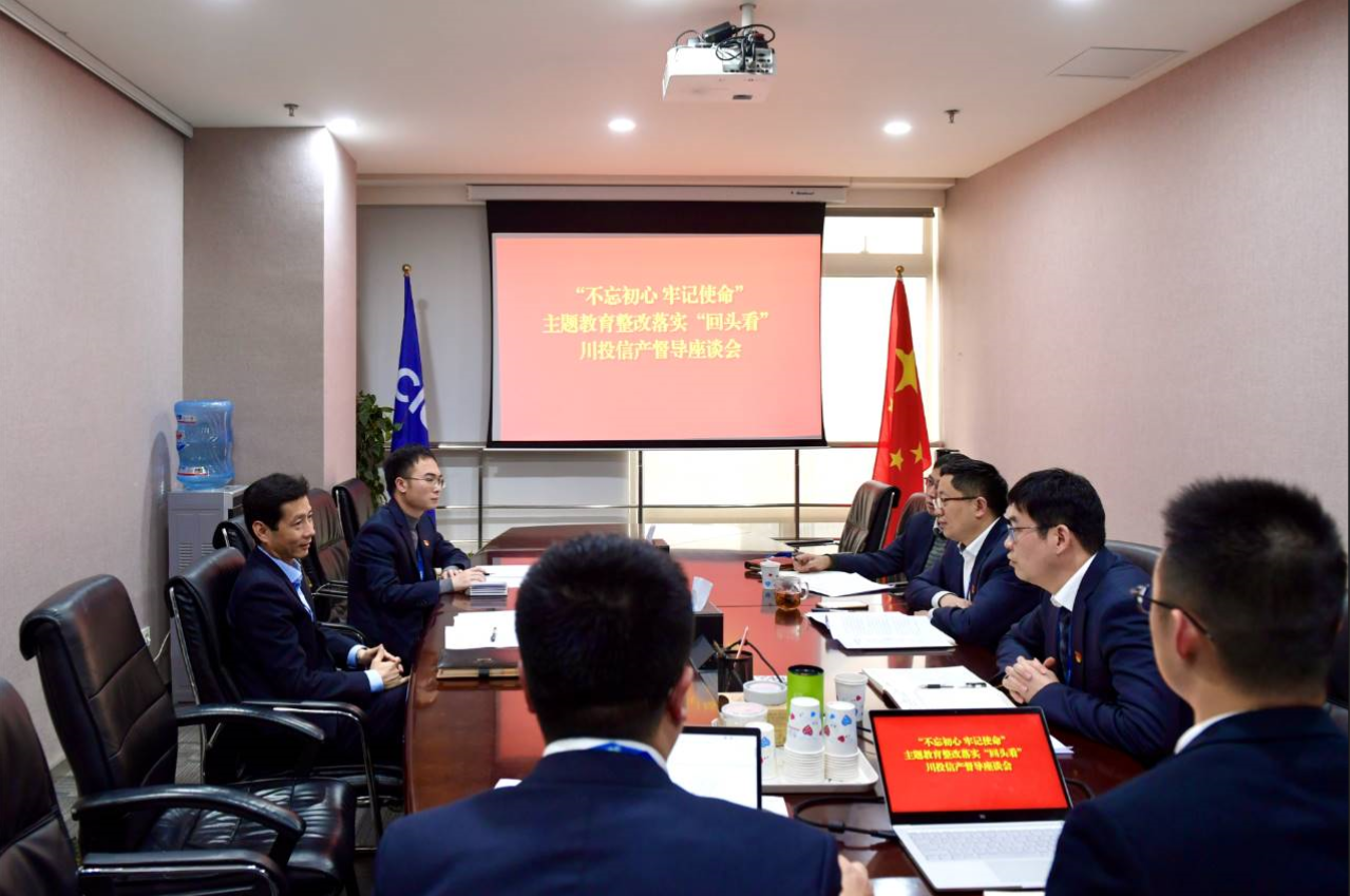 張昊副總經(jīng)理一行聽取了川投信產(chǎn)公司黨支部書記、董事長、總經(jīng)理王波關(guān)于川投信產(chǎn)“不忘初心、牢記使命”主題教育整改落實情況及專項整治工作的匯報。