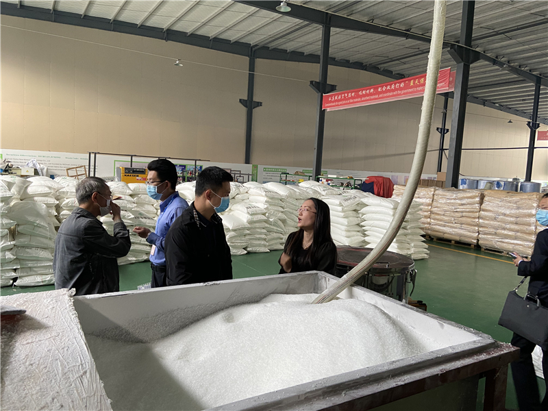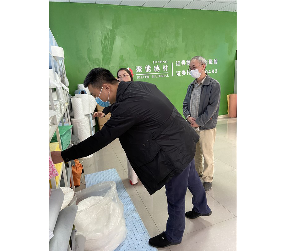 上午十點,羅永平副總經(jīng)理一行抵達(dá)四川聚能濾材有限公司后,首先參觀了聚能公司生產(chǎn)車間,詳細(xì)了解熔噴布生產(chǎn)工序、技術(shù)要點、環(huán)境保護(hù)、用電用水并逐一詢問各環(huán)節(jié)所需成本。期間,四川聚能公司盧林總經(jīng)理對聚能公司發(fā)展歷程及前景做了詳細(xì)介紹:聚能公司生產(chǎn)的熔噴布供不應(yīng)求,作為醫(yī)用口罩最核心的原材料,其生產(chǎn)的醫(yī)用熔噴布是目前四川省唯一一家獲得認(rèn)證的產(chǎn)品,同時公司正在與四川大學(xué)合作開發(fā)石墨烯配方的熔噴布,石墨烯配方的熔噴布制作的醫(yī)用口罩質(zhì)保期將提高一倍,還具有殺菌的作用,從而減少了對環(huán)境的二次污染。公司以先進(jìn)技術(shù)為抓手,努力與競爭對手拉開距離,在競爭中勝出。