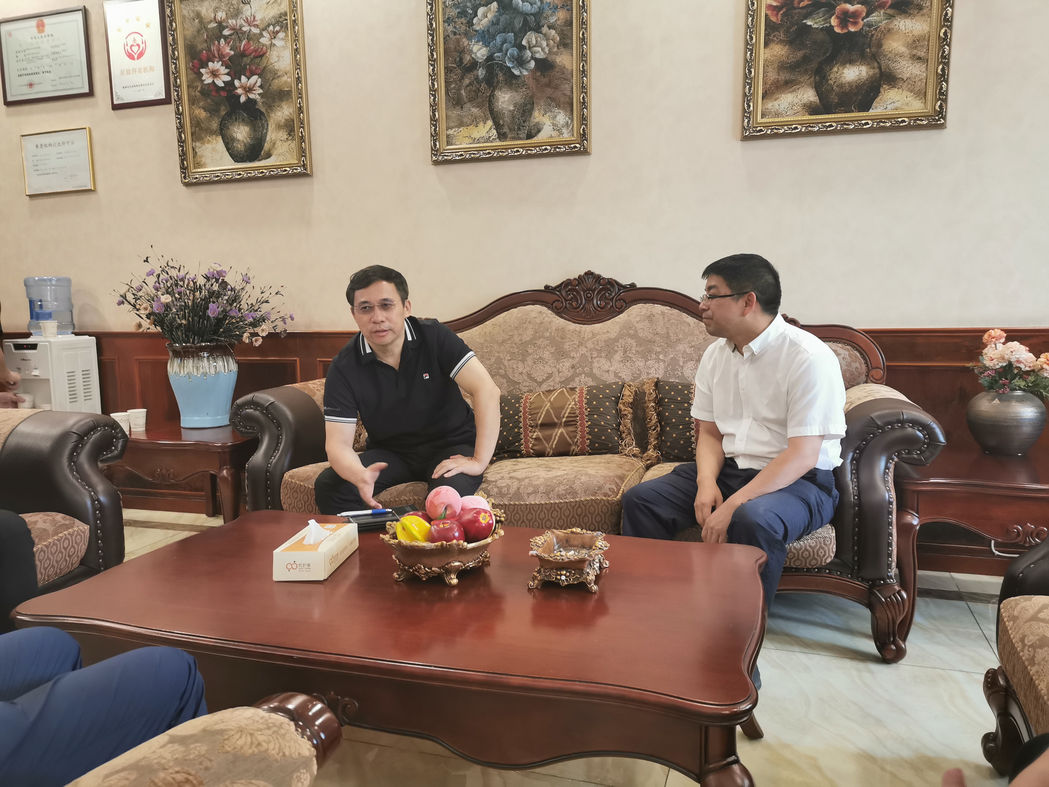 參觀介紹完護(hù)理院后,懷林總與吳恒松院長(zhǎng)進(jìn)行了深入交流,就康福家健康管理有限公司發(fā)展路徑、優(yōu)護(hù)家護(hù)理院經(jīng)營(yíng)情況、股東構(gòu)成、未來(lái)發(fā)展思路及醫(yī)保政策長(zhǎng)照險(xiǎn)等問(wèn)題深入探討,針對(duì)雙方布局康養(yǎng)產(chǎn)業(yè)差異性和協(xié)同效應(yīng)進(jìn)行探討,對(duì)合作思路進(jìn)行溝通,明確階段性工作任務(wù)。