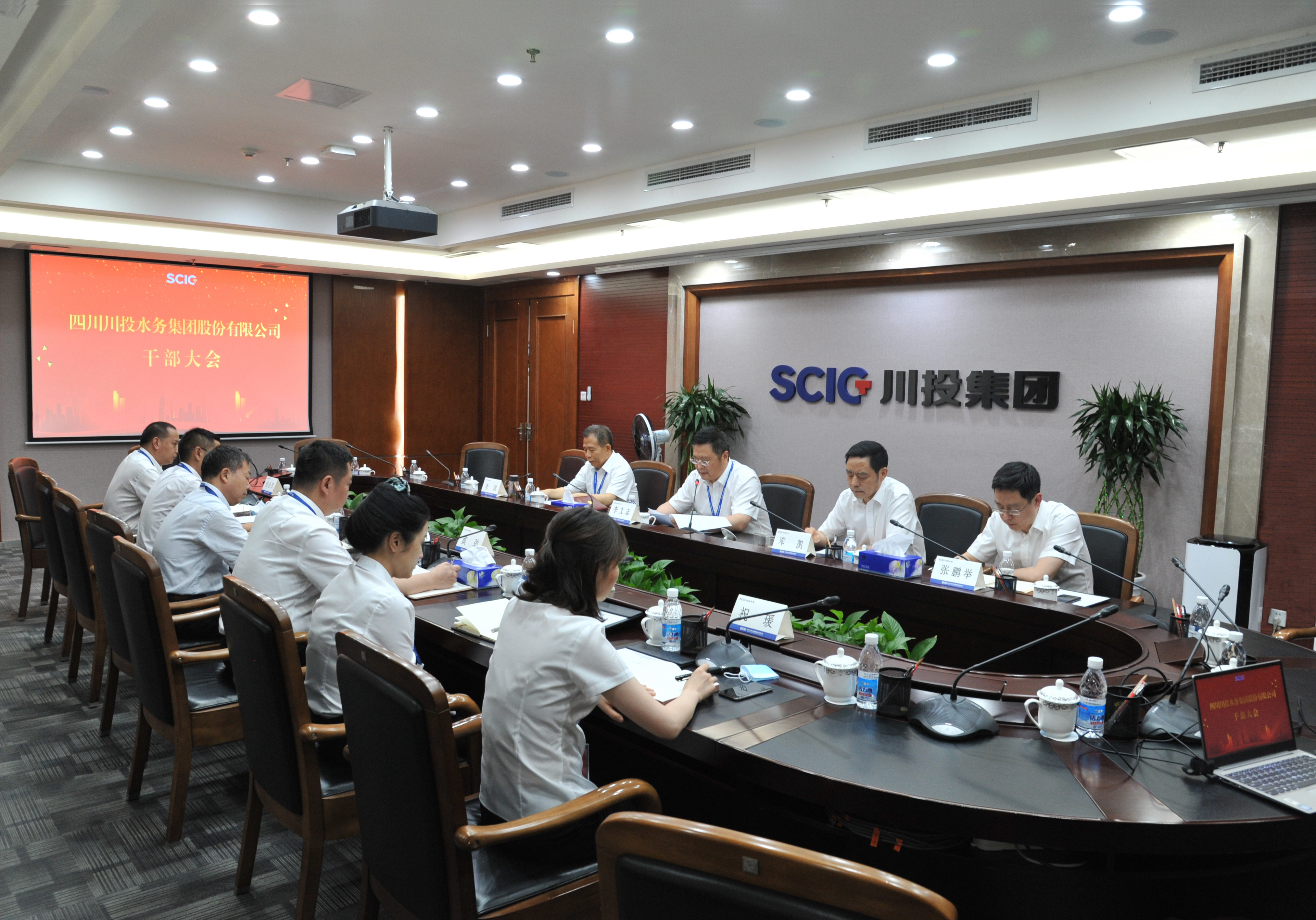 6月5日下午,川投水務干部大會在川投大廈1508會議室召開。川投集團黨委副書記、副董事長、總經(jīng)理李文志,黨委副書記、董事鄧凱,董事、副總經(jīng)理李洪,人力資源部部長張鵬舉出席會議。會議由川投集團黨委副書記、董事鄧凱主持。