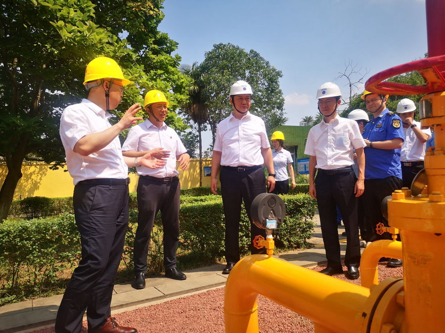 黃勁一行還前往宏源氣司氣井、儲配站、CNG加油加氣站、液化氣充裝站等地視察調(diào)研、檢查安全工作,并前往客戶服務(wù)中心了解了宏源氣司打造一站式服務(wù)、信息化建設(shè)等情況。在井場和儲配站,黃勁一行了解了場站設(shè)備設(shè)施、工藝流程和安全運(yùn)行等情況,并重點(diǎn)察看了安全生產(chǎn)清單制資料臺賬和燃?xì)?/span>SCADA系統(tǒng);在CNG加油加氣站和液化氣充裝站,黃勁一行察看了加油加氣流程、儲氣罐、壓縮機(jī)房和液化氣儲罐區(qū)安全運(yùn)行情況,了解當(dāng)前成品油和壓縮氣的價(jià)格、行情、油和氣各自優(yōu)勢等經(jīng)營細(xì)節(jié)。黃勁對宏源氣司“安全專家會(huì)診”等措施給予了充分認(rèn)可,要求宏源氣司繼續(xù)把安全供氣放在首位,以優(yōu)質(zhì)高效服務(wù)做好民生保障,針對當(dāng)前夏季高溫暴雨天氣情況,要認(rèn)真吸取溫嶺槽罐車爆炸事故教訓(xùn),加強(qiáng)重要區(qū)域、關(guān)鍵環(huán)節(jié)的安全管理,加強(qiáng)隱患排查治理,要堅(jiān)持“以人為本,安全第一”的原則,提前做好搶險(xiǎn)撤避應(yīng)急預(yù)案,提高應(yīng)急處置能力,持續(xù)保持安全平穩(wěn)發(fā)展態(tài)勢。