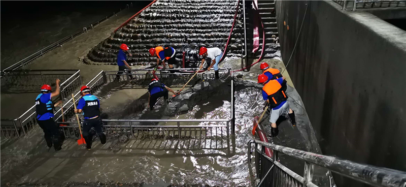 據(jù)了解,受“8.16”百年一遇的涪江洪峰過境影響(此次洪峰流量最高達(dá)22600立方米/秒,比2018年“7.11”洪災(zāi)時(shí)最高流量高出1200立方米/秒),川投水務(wù)射洪水司龍灘村取水口廠區(qū)被過境洪峰及其攜帶的大量泥沙所淹沒,被迫停止取水。為盡快恢復(fù)正常供水,黃勁與川投水務(wù)黨委副書記、總經(jīng)理鄧銳駐守射洪水司現(xiàn)場(chǎng)指揮,帶領(lǐng)由射洪水司精干力量組成的應(yīng)急搶險(xiǎn)隊(duì)伍歷經(jīng)22小時(shí)連續(xù)不間斷奮戰(zhàn),成功恢復(fù)供水,取得抗洪搶險(xiǎn)的階段性勝利。