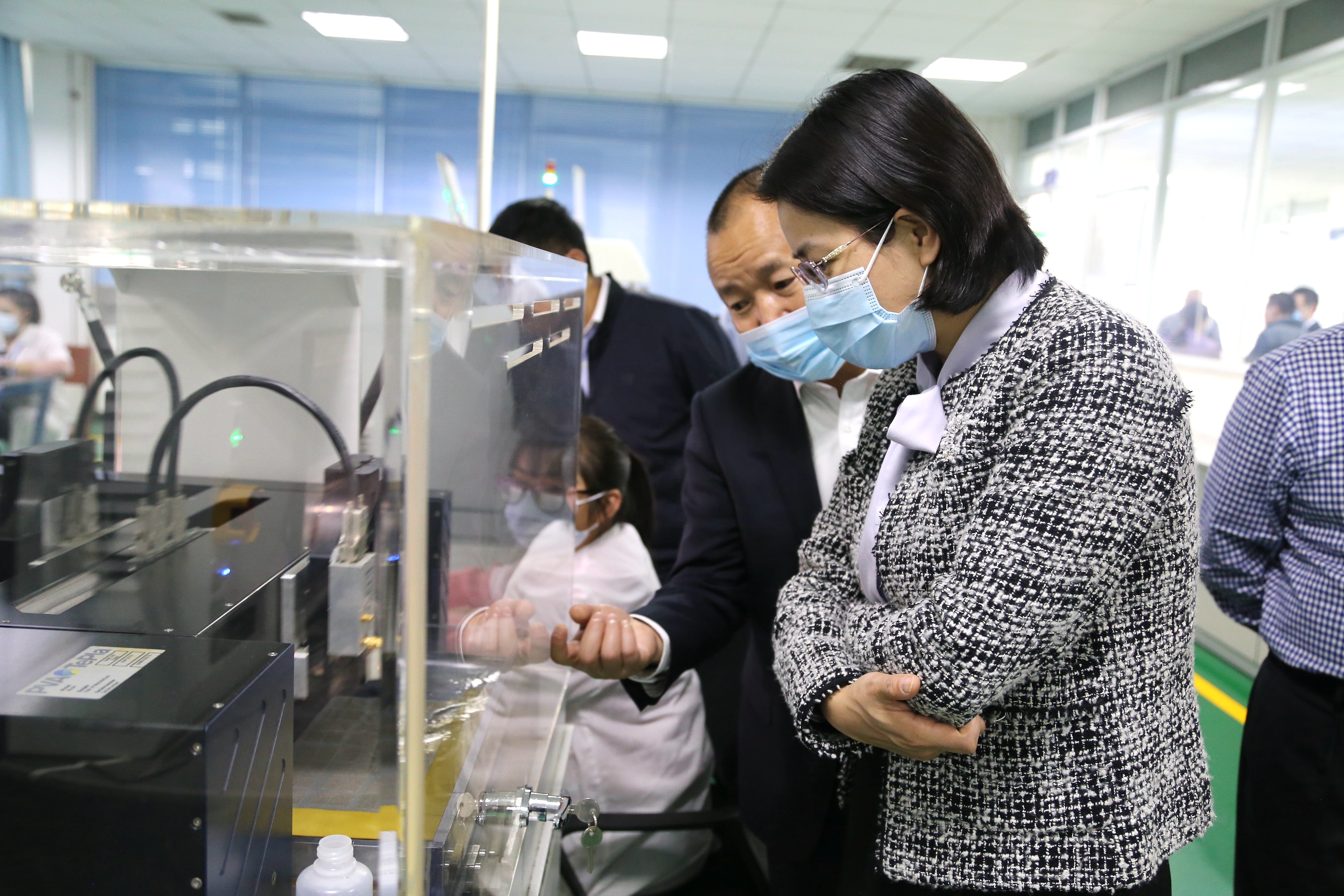 調研中,周巧凌聽取了宏明電子發(fā)展歷程、三線建設、五彩黨建、發(fā)展規(guī)劃的匯報,深入宏明生產車間一線,考察重點產品生產線,詳細了解了產品門類、應用領域、技術研發(fā)創(chuàng)新等情況。