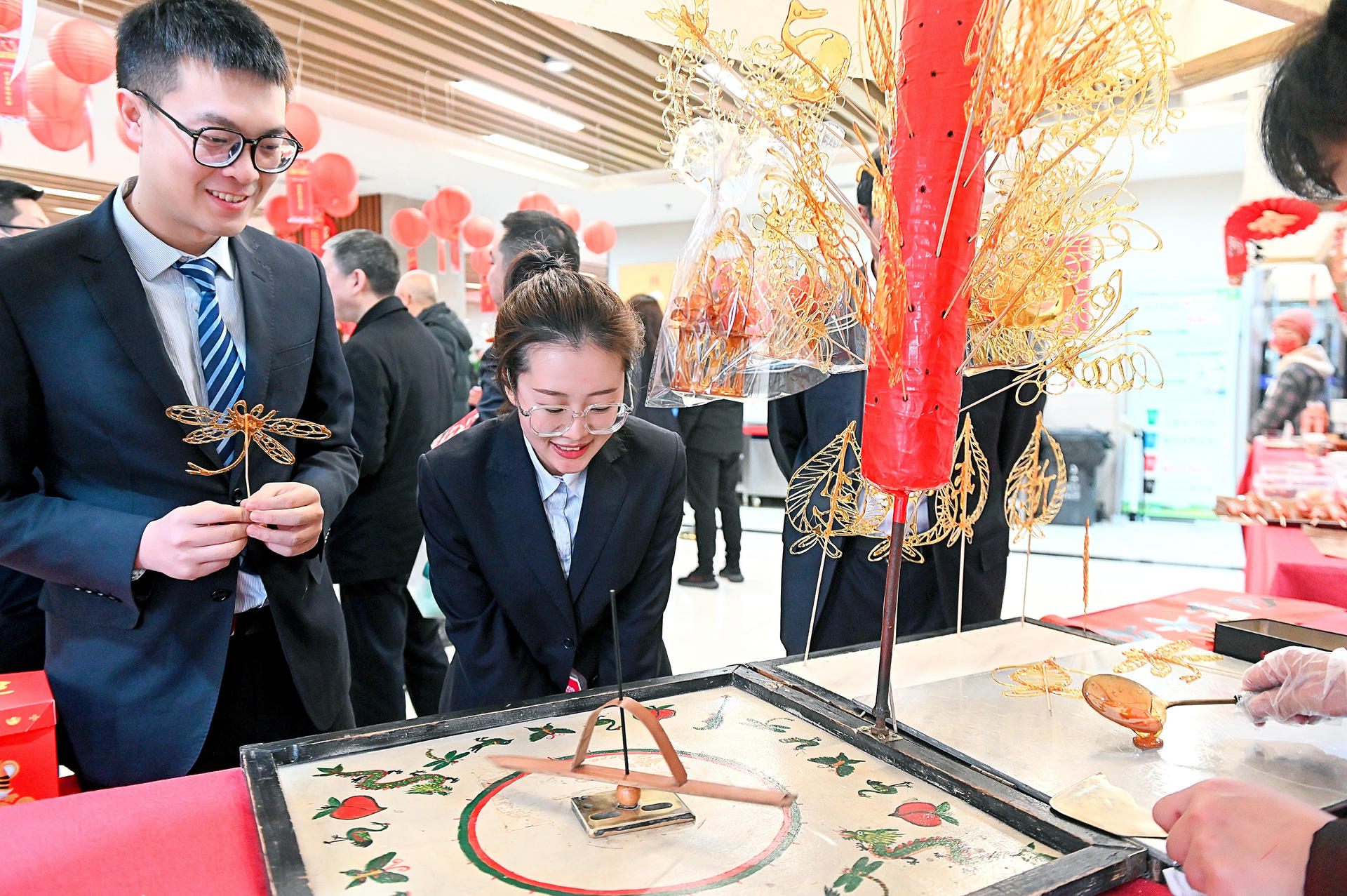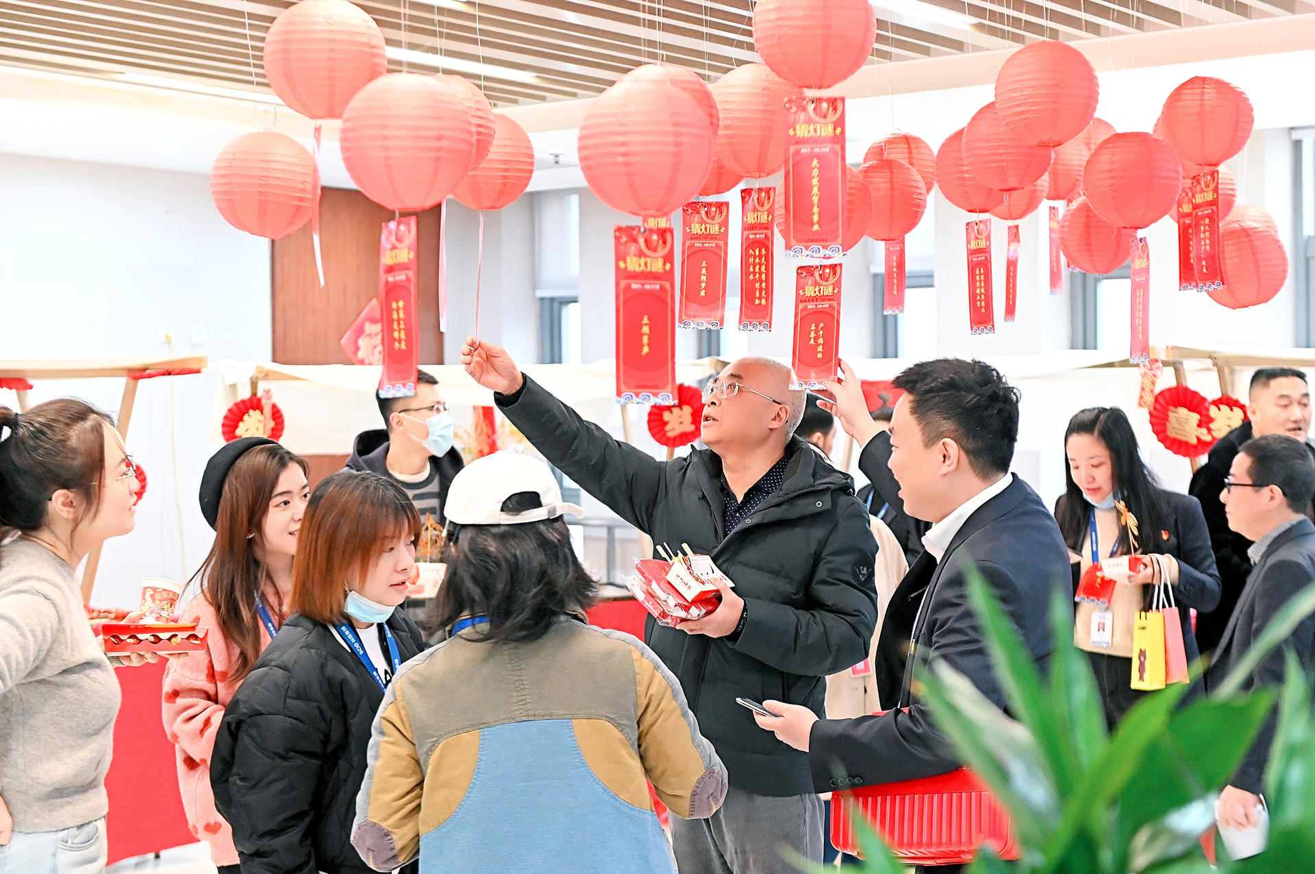 本次活動分為新春游園會和摜蛋趣味賽上下半場,上午的新春游園會設置有“美食集市區(qū)”“非遺體驗區(qū)”“虎聯(lián)拿福區(qū)”“文韻互動區(qū)”“武韻挑戰(zhàn)區(qū)”等五大主題,剪窗花、寫春聯(lián)、猜燈謎、飛花令、品傳統(tǒng)美食、玩趣味游戲,年味十足,喜氣洋洋,活動現(xiàn)場人頭攢動,歡聲笑語洋溢在整個活動現(xiàn)場,每個人都玩得不亦樂乎。