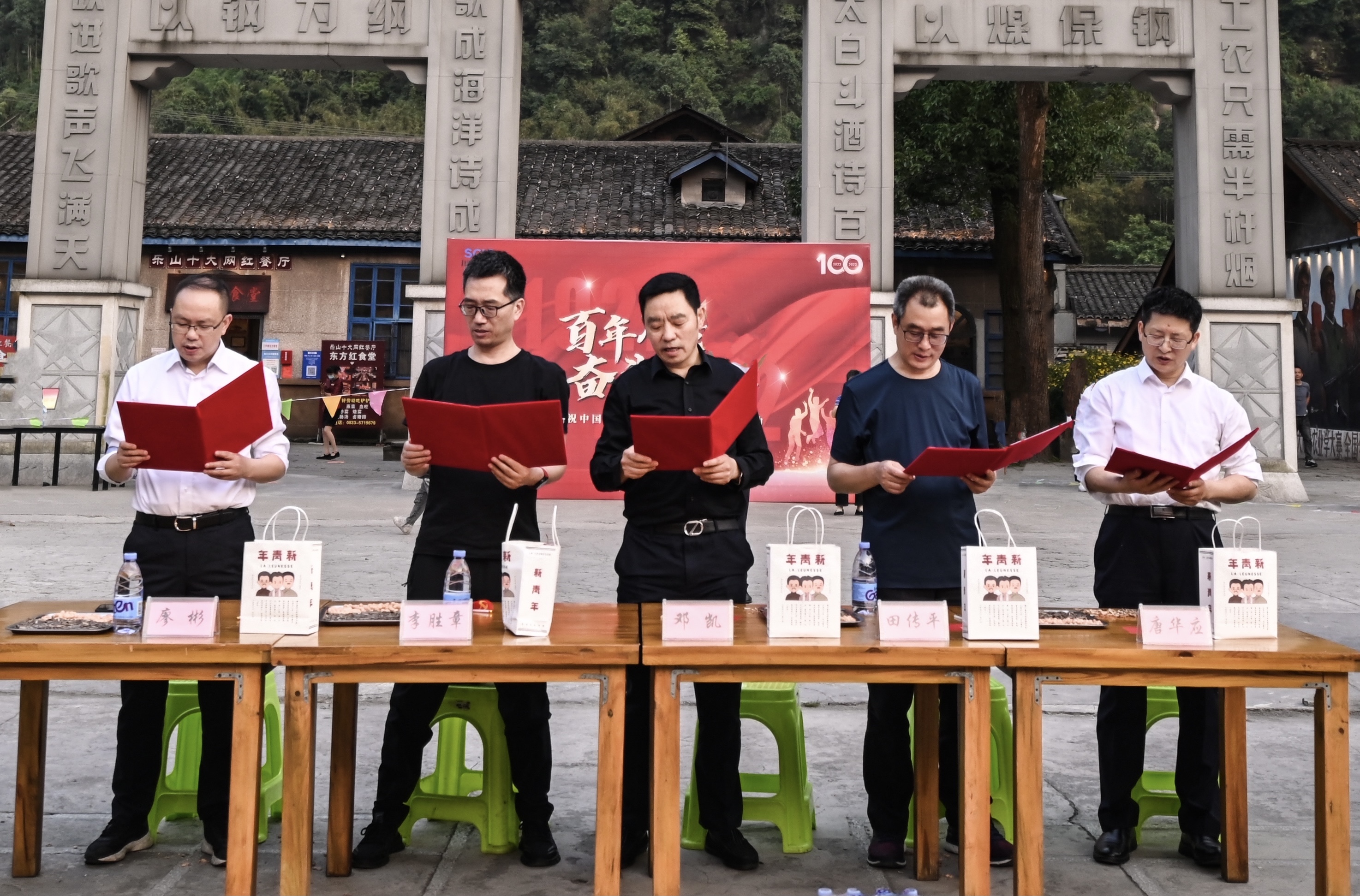 活動(dòng)現(xiàn)場,鄧凱分別向“嘉陽煤礦團(tuán)總支部”和“川投峨旅講解服務(wù)團(tuán)隊(duì)”授予“青年突擊隊(duì)”和“青年文明號(hào)”旗幟。青年代表們集合在共青團(tuán)的旗幟下,齊唱團(tuán)歌,重溫入團(tuán)誓詞。全體人員齊聲誦讀李大釗先生《青春》節(jié)選片段,合唱《我和我的祖國》《紅旗飄飄》等主旋律歌曲,在誦讀聲中銘記激情豪邁的覺醒力量,在歌唱中激揚(yáng)青春逐夢的奮進(jìn)旋律。