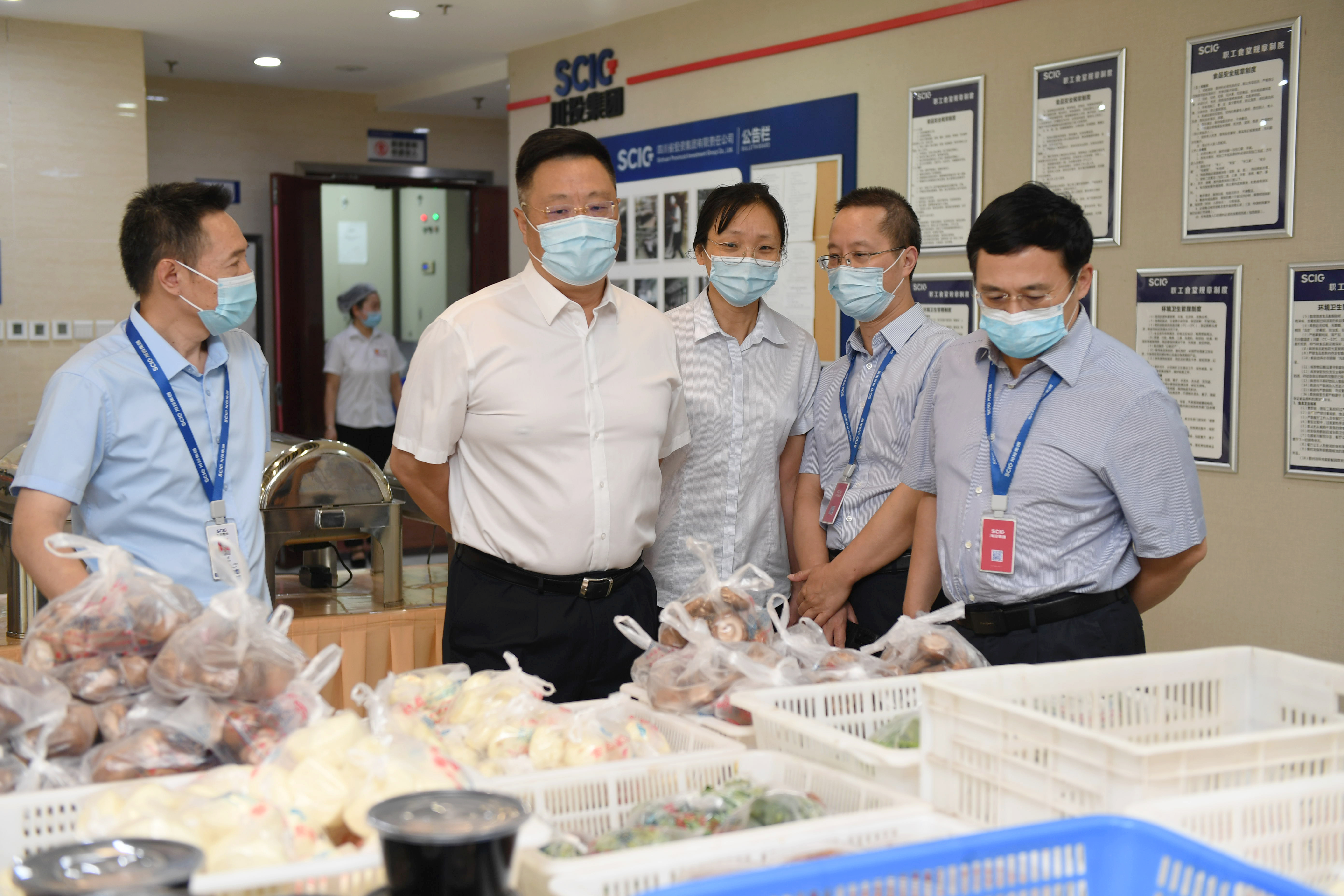 李文志、王懷林分別對川投大廈出入口、集中隔離點(diǎn)、職工食堂、監(jiān)控室及云計(jì)算中心等重要點(diǎn)位進(jìn)行了檢查,詳細(xì)查看了安全監(jiān)控、環(huán)境消殺、消防物資儲(chǔ)備等落實(shí)情況。