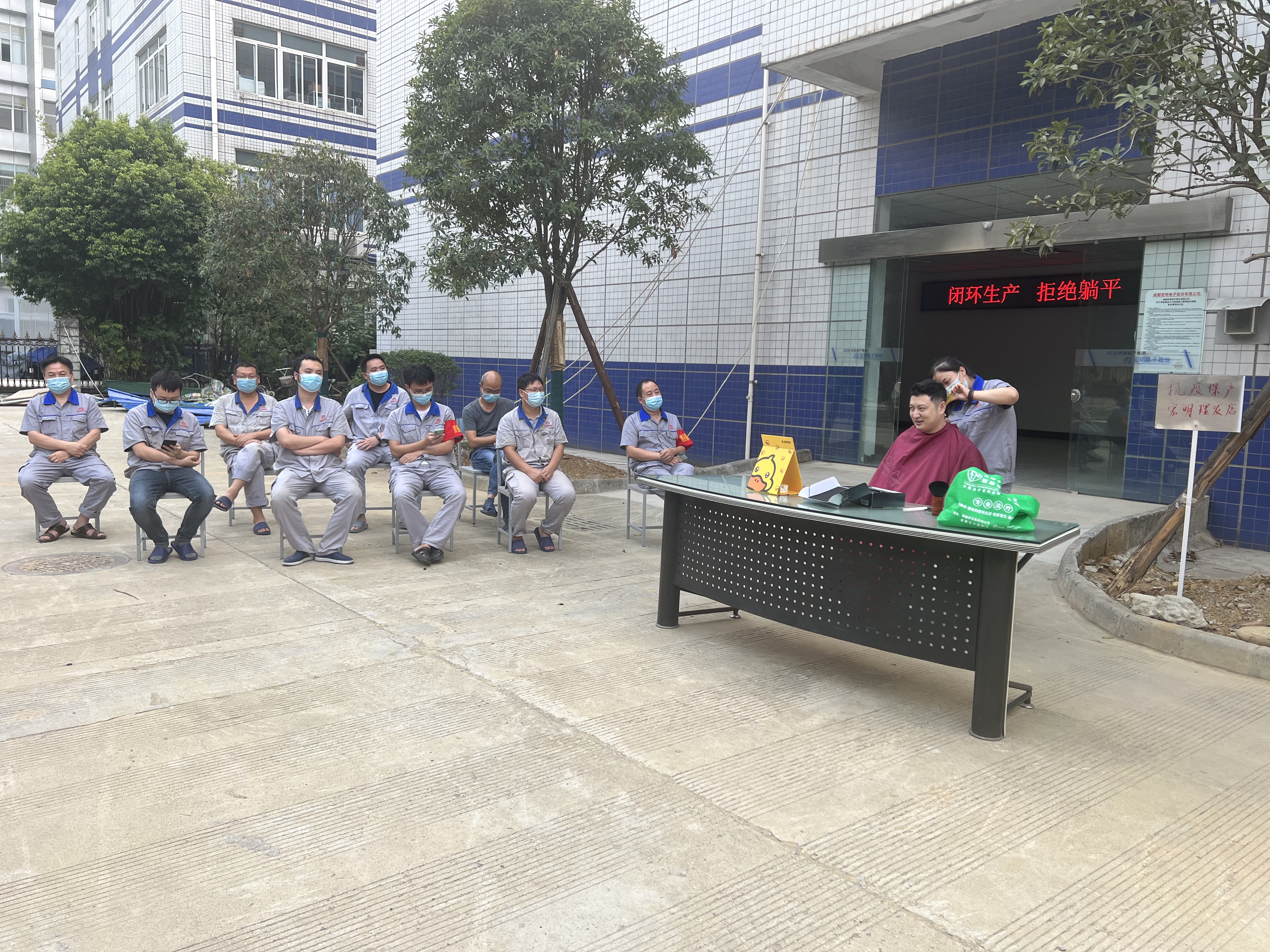 宏明有機(jī)電容生產(chǎn)調(diào)度員廖雪梅“靈機(jī)一動(dòng)”,決定“開一家”簡易理發(fā)店。就這樣,9月12日晚,宏明電子基地一樓臨時(shí)的“宏明理發(fā)店”開張了。廖雪梅還邀請了有理發(fā)經(jīng)驗(yàn)的卷繞工——葉發(fā)翠同志一同幫忙,為在崗男同事們“剪”去煩惱。