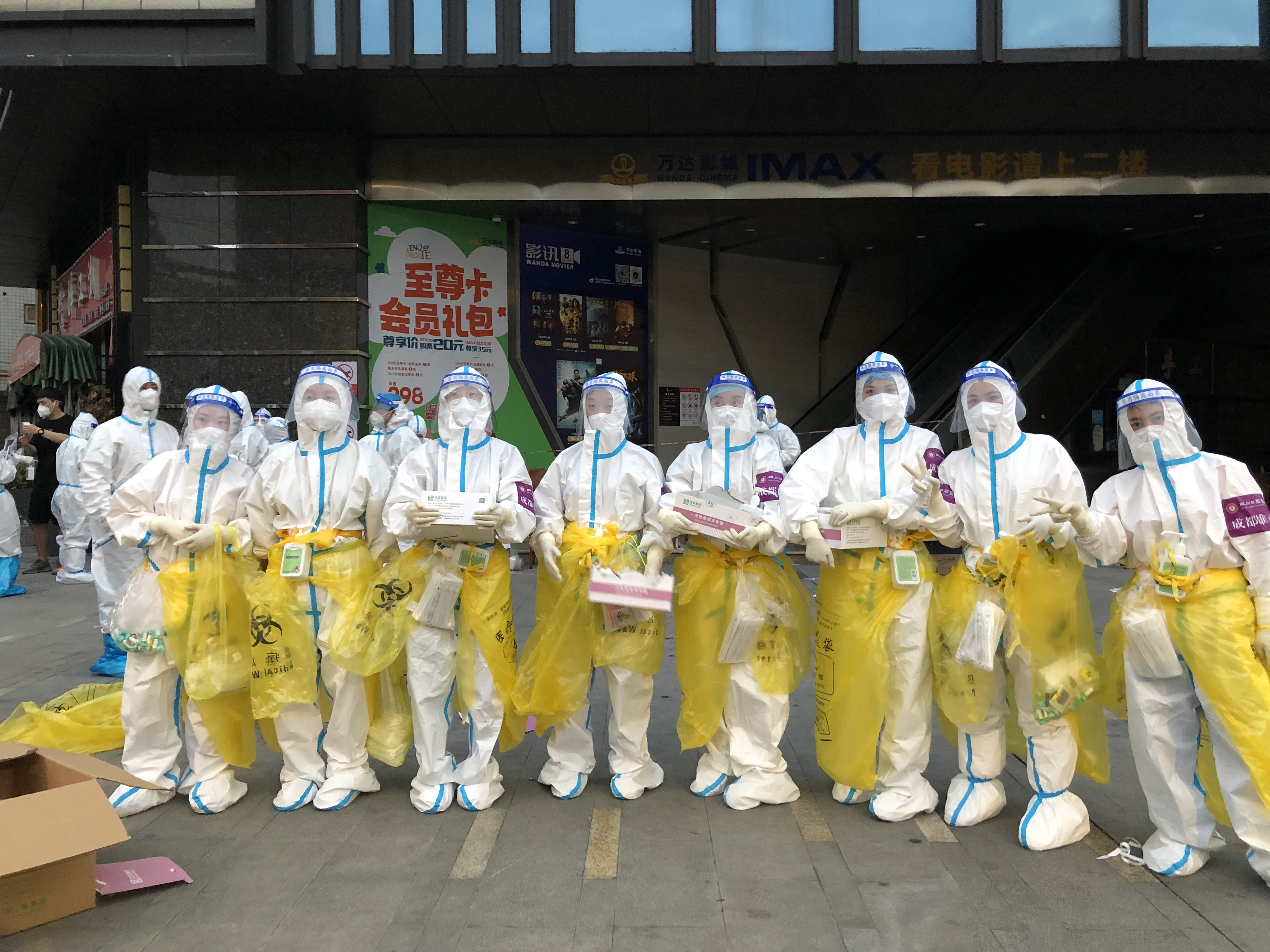 敲門——登記信息——樣本采集——消毒清潔,完成核酸采樣后,四川口腔醫(yī)院的“大白們”不忘叮囑住戶做好日常防護(hù)和通風(fēng)消毒?!白尯怂岵蓸硬粌H有速度,更有溫度。”社區(qū)的工作人員稱贊。