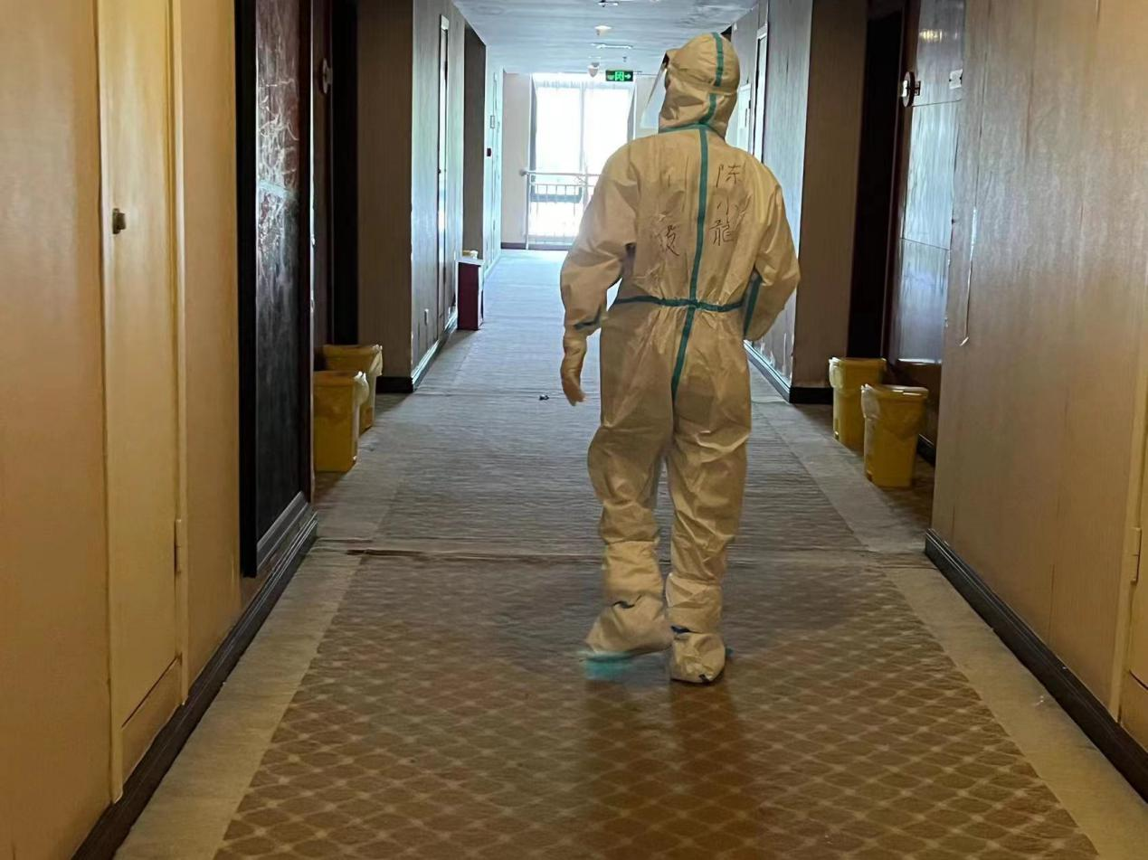 由于客人構(gòu)成復(fù)雜,政府工作人員不足,除了客房清潔之外,川投國網(wǎng)所有隔離人員的三餐配送、醫(yī)廢清理、解釋答疑以及最艱巨的陽性房間的消殺清理等工作,需要由青年服務(wù)隊(duì)人員完成。