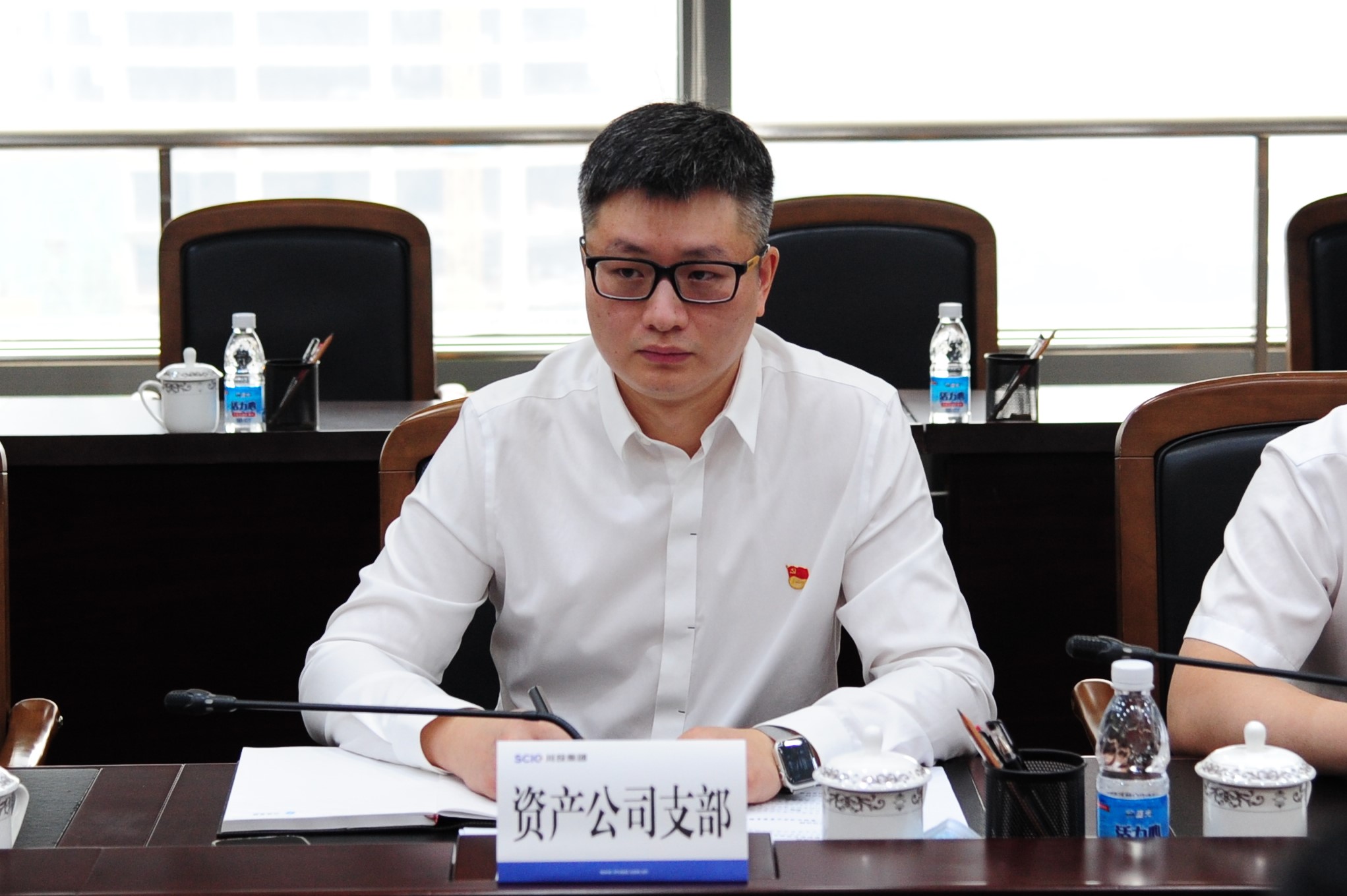 集團公司辦公室主任、董事會秘書、辦公室黨支部書記周家超,機關黨委書記、黨委組織部部長朱莉,川投集團紀委辦副主任趙艷,資產公司全體員工參加會議。