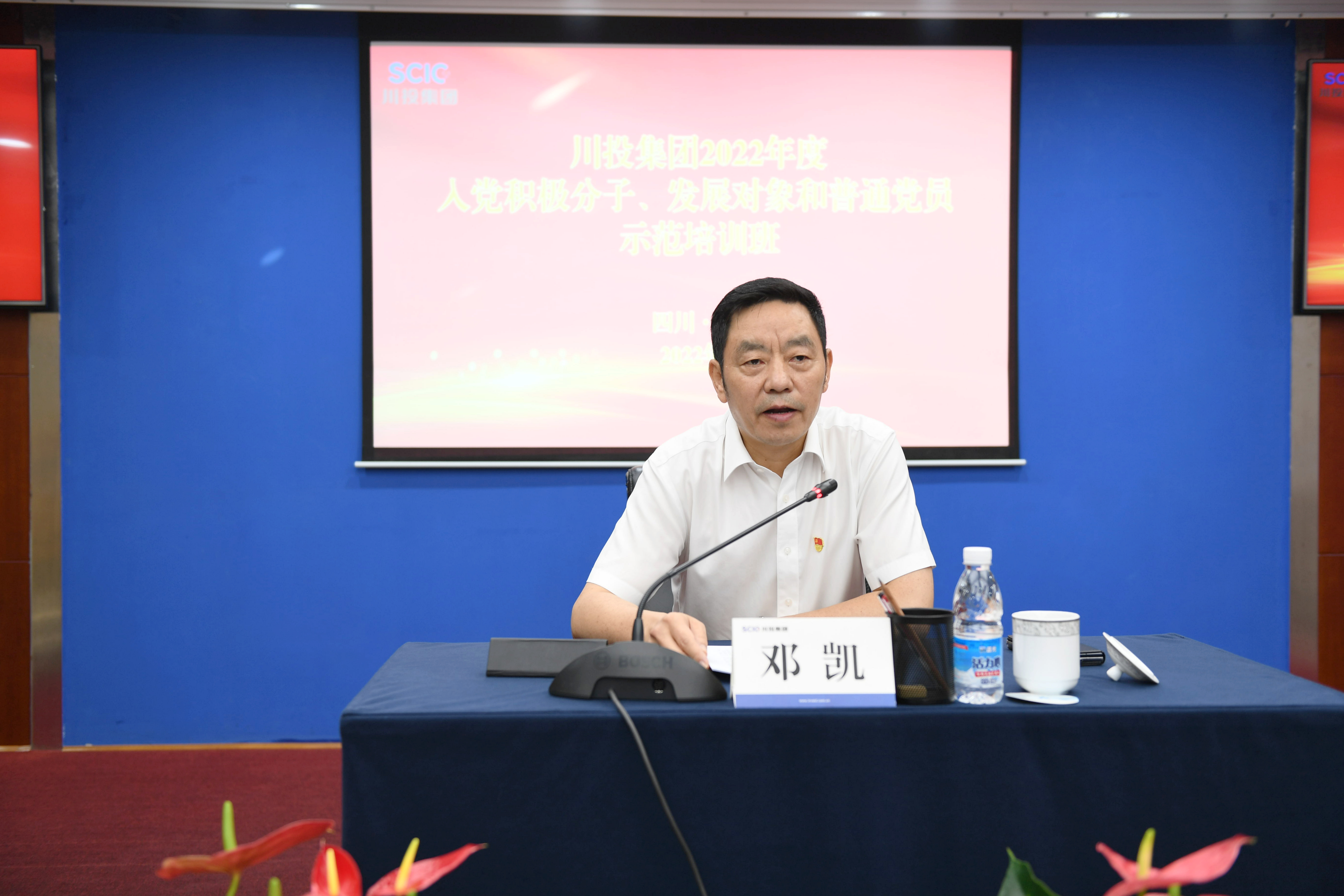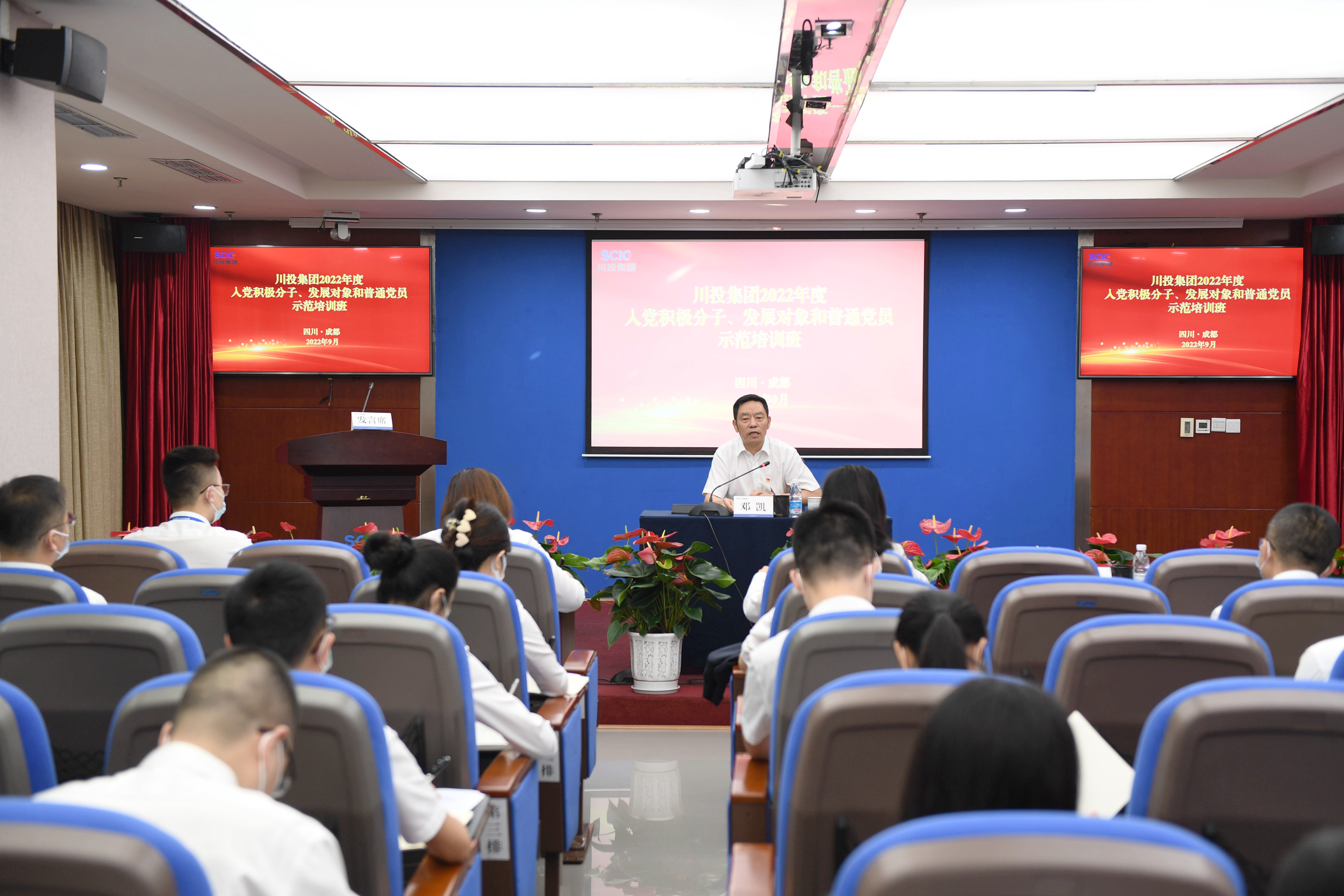 在集團(tuán)上下奮力開展“決戰(zhàn)四季度,大干一百天”攻堅(jiān)行動(dòng)的關(guān)鍵時(shí)期,為深入學(xué)習(xí)貫徹習(xí)近平總書記來川視察重要講話精神,落實(shí)省第十二次黨代會(huì)部署要求,夯實(shí)黨員教育管理和發(fā)展黨員基礎(chǔ)性經(jīng)常性工作,培養(yǎng)造就忠誠干凈擔(dān)當(dāng)?shù)母咚刭|(zhì)黨員隊(duì)伍,9月28日上午,川投集團(tuán)2022年入黨積極分子、發(fā)展對象和普通黨員示范培訓(xùn)班順利開班。川投集團(tuán)黨委副書記、董事、集團(tuán)黨校校長鄧凱出席開班儀式并講話,川投集團(tuán)機(jī)關(guān)黨委書記、黨委組織部部長、集團(tuán)黨校校務(wù)委員朱莉主持開班儀式。