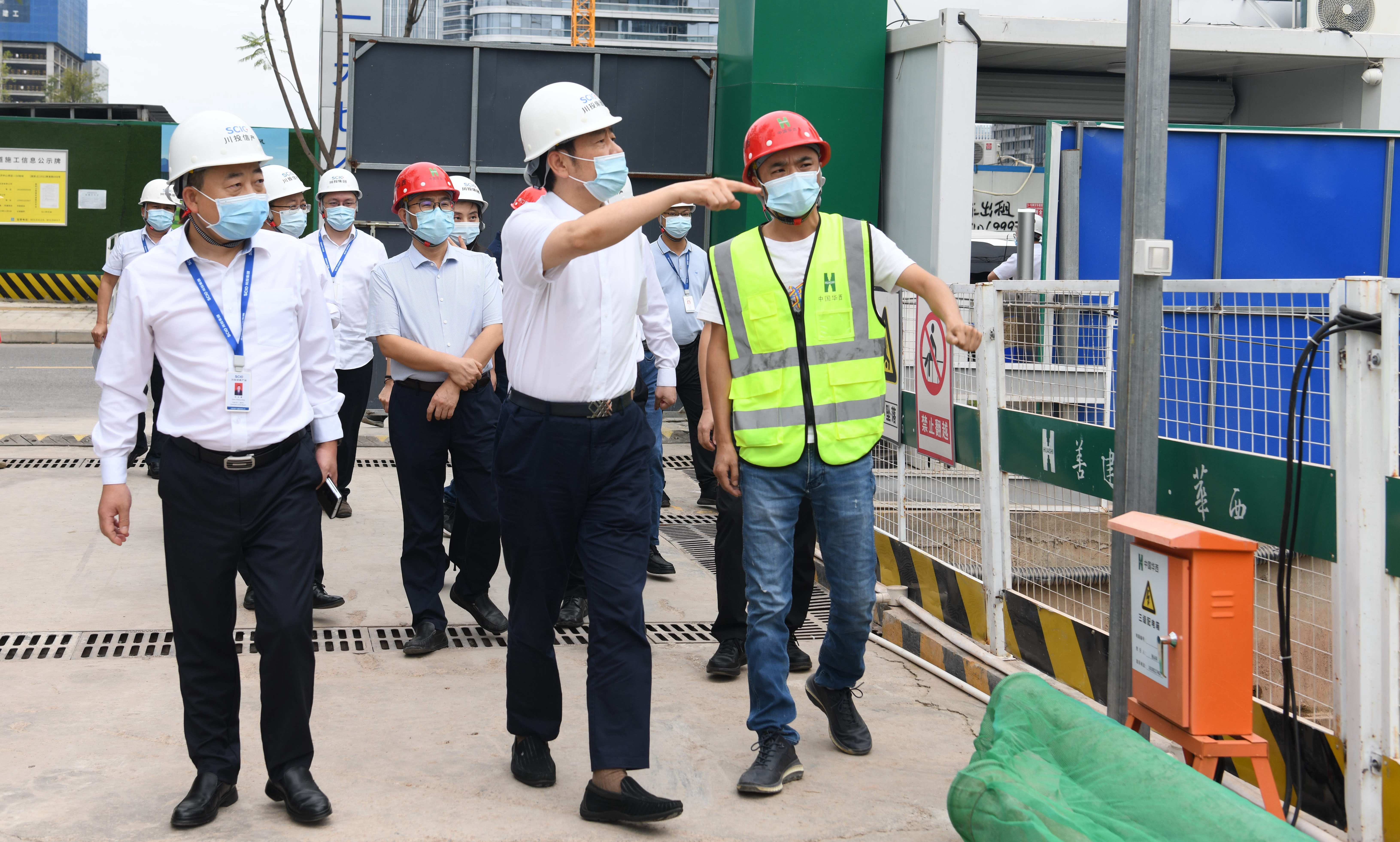 鄧凱一行實地檢查了川投信息產(chǎn)業(yè)總部基地項目施工現(xiàn)場,并對項目設(shè)計規(guī)劃、施工建設(shè)進展、疫情防控、安全生產(chǎn)與黨建宣傳等進行了工作指導(dǎo)。隨后,鄧凱一行前往川投信產(chǎn)本部開展督導(dǎo)檢查,查閱了相關(guān)臺賬,并聽取了川投信產(chǎn)綜合大檢查的工作匯報。