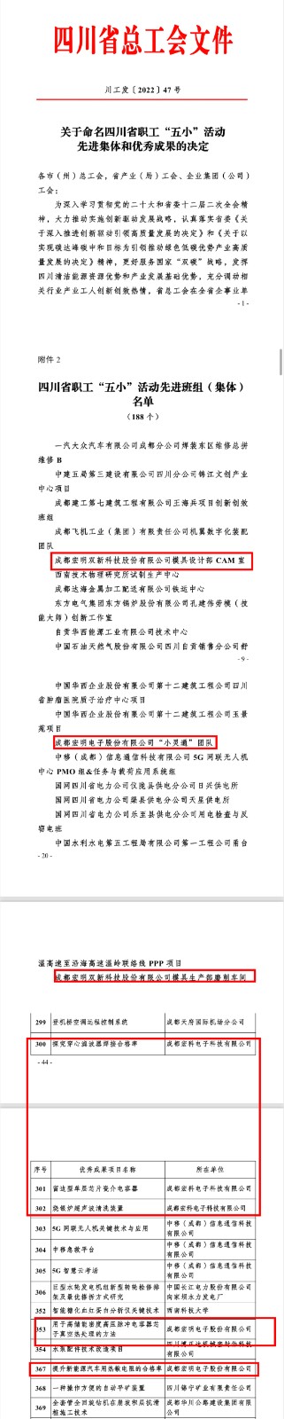 近日,四川省總工會(huì)印發(fā)《關(guān)于命名四川省職工“五小”活動(dòng)先進(jìn)集體和優(yōu)秀成果的決定》《關(guān)于2022 年四川省“最美新就業(yè)形態(tài)勞動(dòng)者”的表?yè)P(yáng)通報(bào)》,川投集團(tuán)均榜上有名,喜獲表彰!
