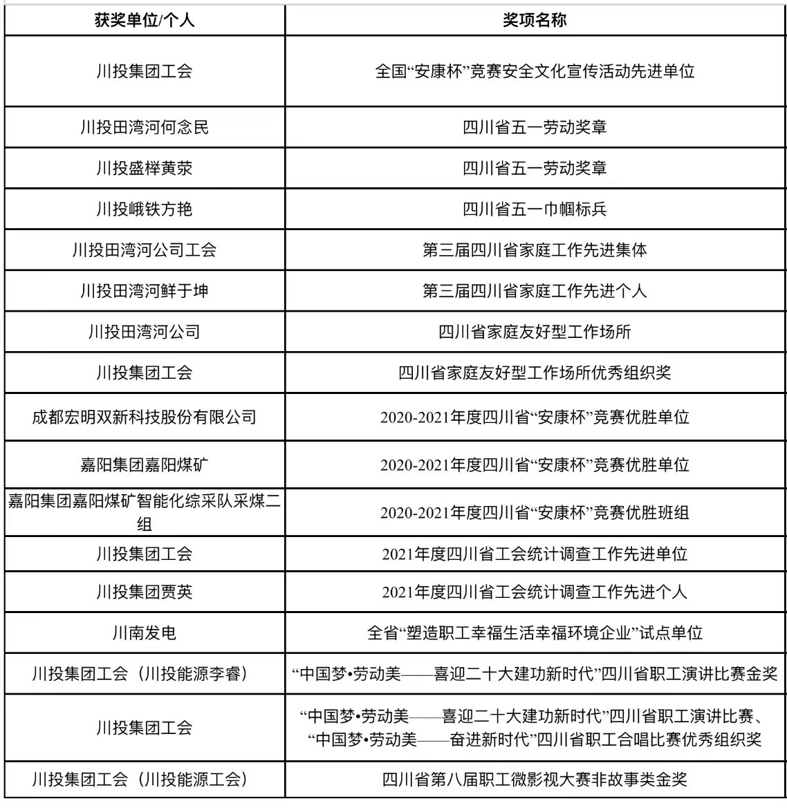 川投集團(tuán)工會(huì)堅(jiān)持以“服務(wù)基層、服務(wù)職工”為宗旨,圍繞中心、服務(wù)大局,切實(shí)推進(jìn)各類推優(yōu)評(píng)先工作,2022年度全集團(tuán)工會(huì)系統(tǒng)斬獲全國(guó)、全省各類榮譽(yù)表彰26項(xiàng)。