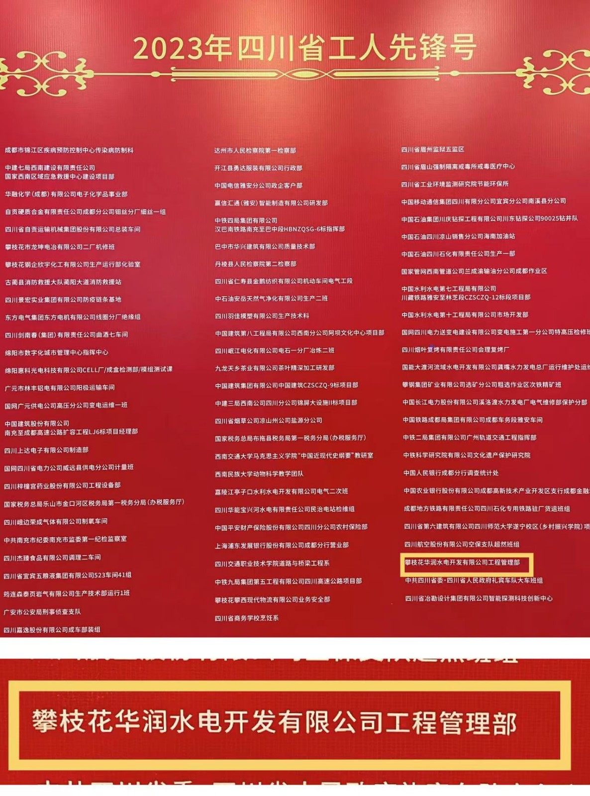 4月25日上午,2023年四川省慶祝“五一”國際勞動節(jié)暨表彰大會在成都舉行。川投集團所屬川投能源的攀枝花華潤水電開發(fā)有限公司(簡稱“川投能源攀水電公司”)工程管理部被授予“四川省工人先鋒號”榮譽稱號。