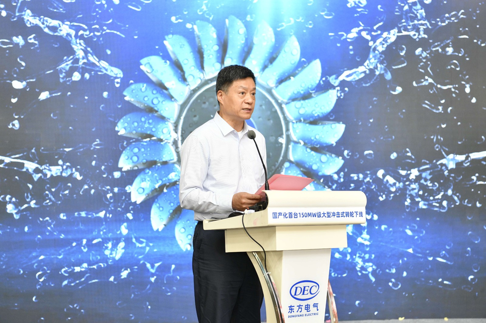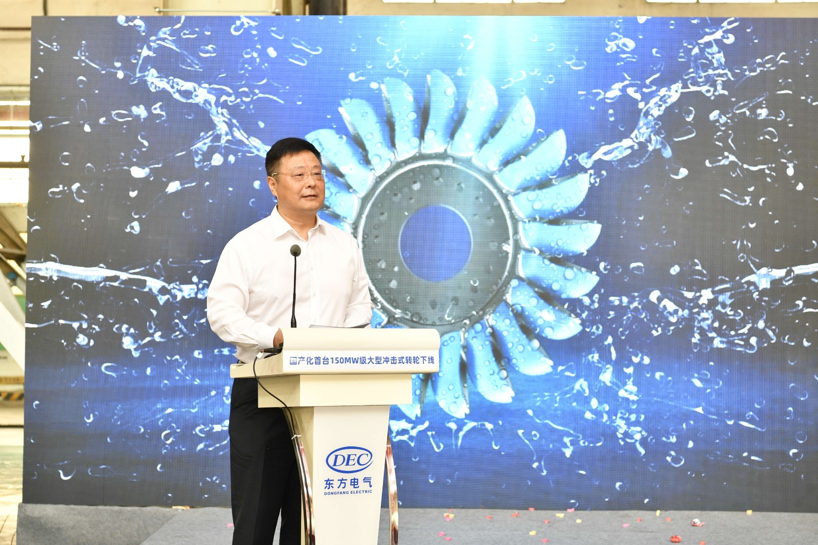 東方電氣集團黨組書記、董事長俞培根代表東方電氣集團向出席活動的領(lǐng)導(dǎo)專家表示熱烈歡迎,向參與150兆瓦級沖擊式轉(zhuǎn)輪國產(chǎn)化研制的全體人員表示熱烈祝賀,向項目重要合作方(川投集團)表示衷心感謝。他表示,本次完工下線的國產(chǎn)化首臺150兆瓦級沖擊式轉(zhuǎn)輪是東方電氣集團深入踐行國家“雙碳”戰(zhàn)略、瞄準(zhǔn)國內(nèi)空白和世界一流開展關(guān)鍵核心技術(shù)攻關(guān)、推動我國能源裝備自立自強的具體實踐。