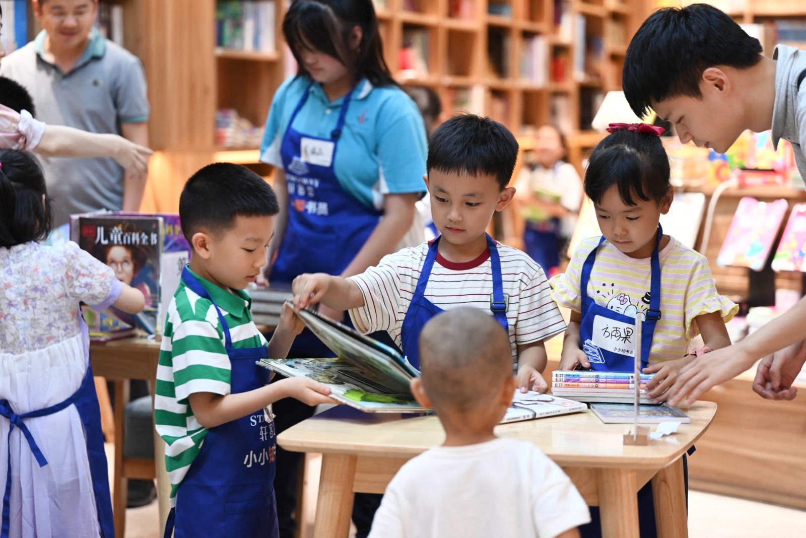 穿上工作服,小朋友們化身“小小知書員”,在書店專業(yè)老師的帶領下,學習圖書出版、圖書分類等知識,體驗圖書管理員日常工作。隨后還舉行了圖書陳列賽,小朋友們4人一組,按主題選取喜歡的圖書,團隊協(xié)作共同完成書籍陳列比拼。每一項活動都讓孩子們激動不已,現(xiàn)場充滿了歡樂氣氛,個個興高采烈,掌聲不斷。