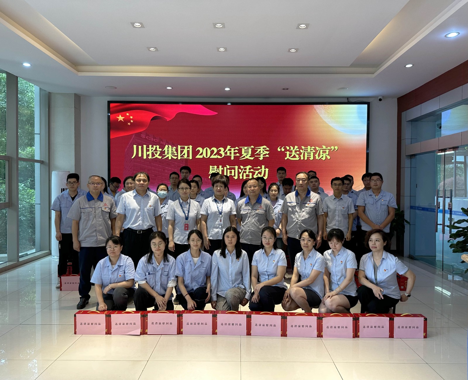隨后,鄭世紅一行來到宏明宏科宇高樓大廳,對公司員工發(fā)放涼茶飲料,向炎炎夏日堅守在崗的員工表示親切慰問。她關(guān)切到,公司全員一定要注意身體狀況,做好防暑工作,要求公司務(wù)必做好高溫防暑的后勤保障工作。