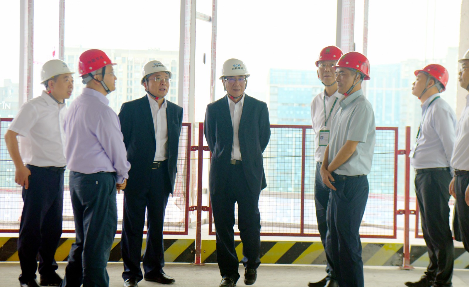 在總部基地項目1、2號樓施工現(xiàn)場,吳曉曦一行實地察看主體工程進度,詳細詢問施工安全、值班值守、運營規(guī)劃等工作情況。聽取項目各單位工作匯報后,吳曉曦對總部基地項目前期建設(shè)進展和安全工作質(zhì)量表示肯定,并向各單位一線作業(yè)人員致以工作慰問與節(jié)日祝福。
