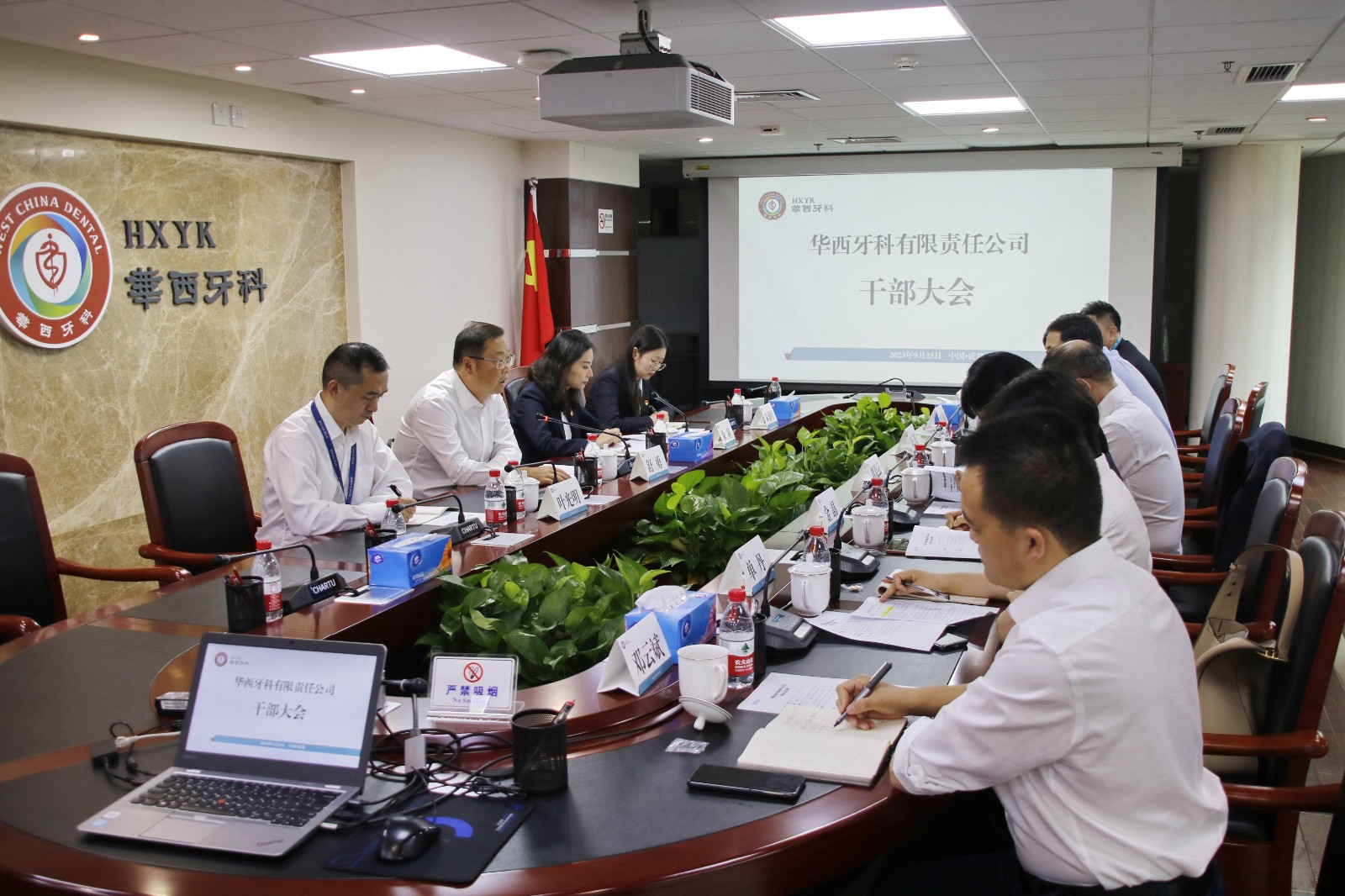 9月25日,華西牙科召開干部大會(huì)。集團(tuán)公司黨委委員、副總經(jīng)理舒勇出席會(huì)議。華西牙科黨委書記、董事長(zhǎng)、總經(jīng)理劉凌云主持會(huì)議。