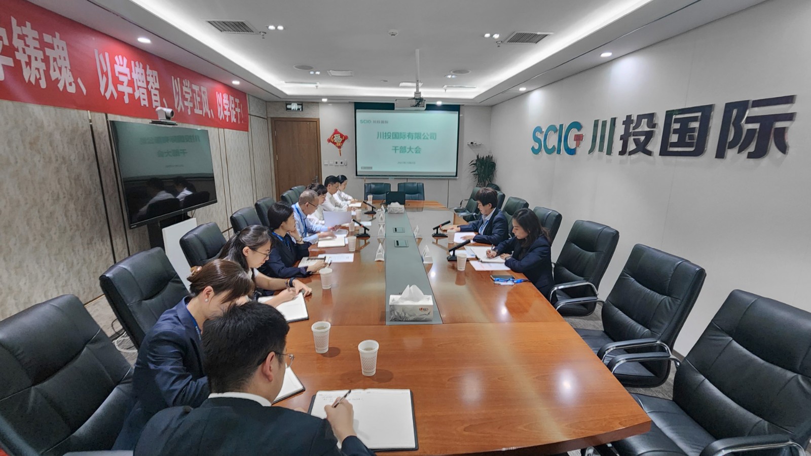 10月8日,集團(tuán)公司副總經(jīng)理鄭世紅出席川投國際干部大會(huì)。川投國際黨支部書記、董事長廖彬主持會(huì)議。
