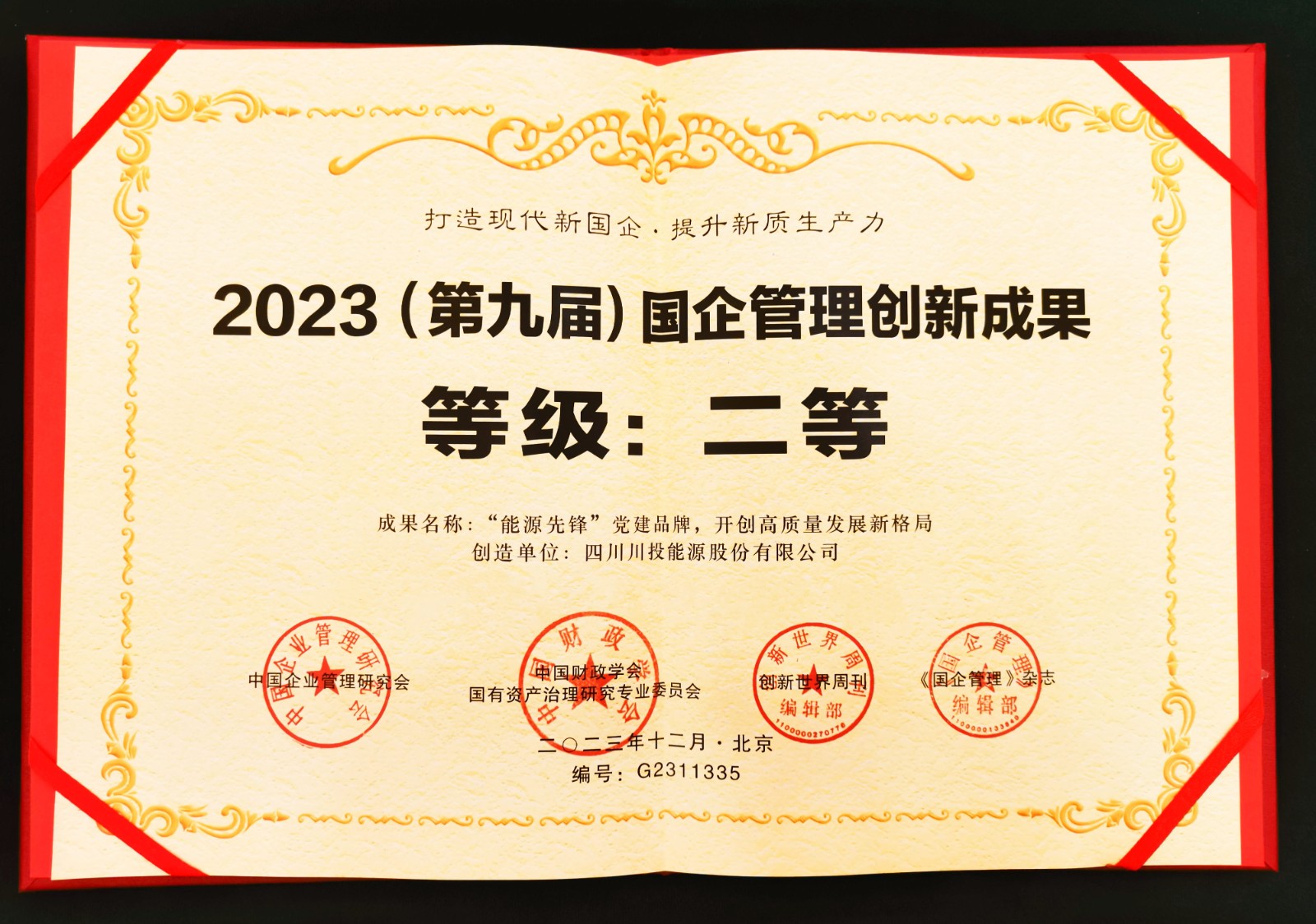 川投能源黨建創(chuàng)新成果(案例)榮獲2023(第九屆)國企管理創(chuàng)新成果二等獎