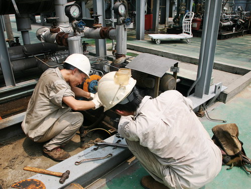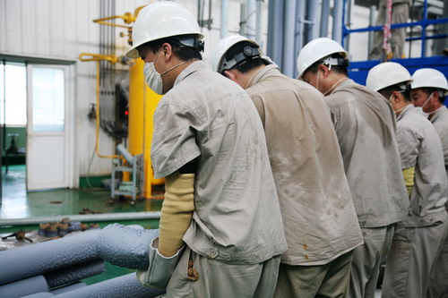 每年七月、八月高溫天氣是多晶硅生產(chǎn)設(shè)備故障的頻發(fā)期,十分不利于多晶硅的生產(chǎn)。尤其在今年,持續(xù)的高溫“烤”驗(yàn)著新光人的意志和多晶硅生產(chǎn)設(shè)備的安全。為了實(shí)現(xiàn)月產(chǎn)100噸的目標(biāo),新光人懷著飽滿的熱情,堅(jiān)持奮戰(zhàn)在一線。我們看到:烈日下的巡檢人員,認(rèn)真仔細(xì)地對(duì)工序設(shè)備儀表進(jìn)行檢查,沒(méi)有半點(diǎn)松懈,工作服被汗水浸濕一次又一次;設(shè)備檢修員頂著烈日、冒著酷暑,順利完成了HCl冷凝單元壓縮機(jī)、鹽水冷凍機(jī)組、氫化爐檢修、淋洗塔清堵與消缺、電氣防雷設(shè)備安裝、硅芯爐檢修、鍋爐檢修、儀表各系統(tǒng)消缺、重大關(guān)鍵設(shè)備巡檢等任務(wù);回收工段的操作員站在CDI設(shè)備前仔細(xì)記錄著每一個(gè)參數(shù),監(jiān)控溫度變化;還原爐裝拆工序的操作員冒著操作環(huán)境的高溫,熟練有序的進(jìn)行裝拆爐,保證質(zhì)量的情況下盡量縮短裝拆爐時(shí)間;老專家們堅(jiān)守在現(xiàn)場(chǎng)悉心指導(dǎo)技術(shù)人員做技改實(shí)驗(yàn);為搶修江邊水泵,基建人員頂著酷暑堅(jiān)守崗位,組織現(xiàn)場(chǎng)大型機(jī)械設(shè)備持續(xù)作業(yè)……