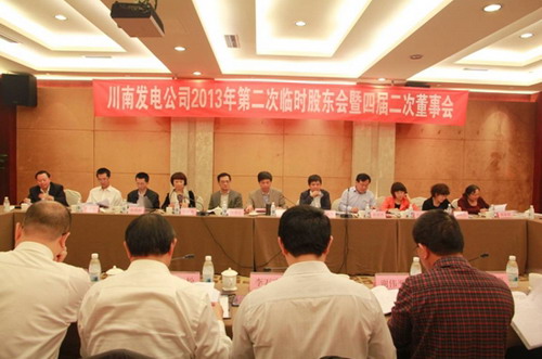 10月29日,川南發(fā)電公司2013年第二次臨時(shí)股東會(huì)暨四屆二次董事會(huì)在成都召開。