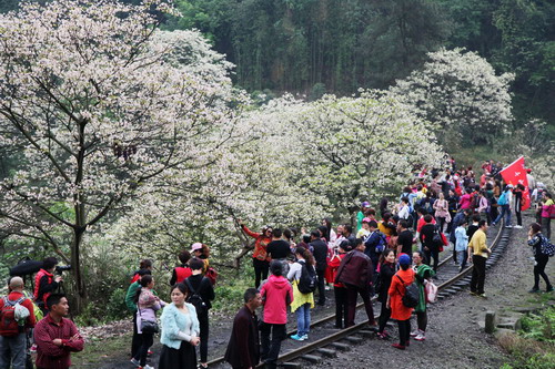 4月9日,嘉陽小火車景區(qū)芭蕉溝徹底high爆了!一年一度浪漫唯美的桐花之約,吸引了來自成都、眉山、樂山等地的眾多攝影團隊和數(shù)百位四處“尋山問水”的徒步群友。觀光攝影專列用他獨有的步調(diào)帶著大家的歡笑和愉悅如約而來,桐子花開得正艷,小火車拉響汽笛噴著蒸汽穿行其間,攝友們伺機而動,姑娘們笑靨如花,這時候,還管他什么攝影水平,快門一按,心情和景色,那都是美美噠。