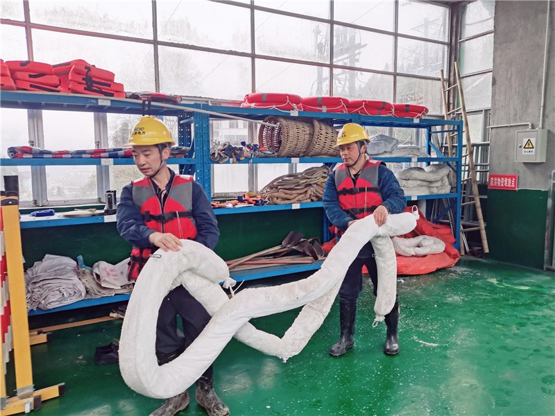 本次演練內(nèi)容為大壩值班人員應對水庫上游突發(fā)水污染事件的現(xiàn)場應急處置,以現(xiàn)場模擬操作的形式開展,全體參演員工準時到位,應急演練在鳳鳴湖水庫大壩正式啟動。演練場景系模擬鳳鳴湖水庫上游意外發(fā)生油污染源流入鳳鳴湖庫區(qū),危及飲用水源安全的“事件”。值班人員發(fā)現(xiàn)險情后,迅即啟動應急預案,一聲令下各路人馬齊齊奔赴各自戰(zhàn)斗崗位:一路緊急關閉進水閘控制源頭;一路火速在水面完成鋪設吸油索、吸油紙攔截油污;一路則同步將“險情”逐級上報公司領導和政府主管部門。在大家冷靜沉著、嚴密配合、協(xié)同處置下,庫區(qū)污染物得到精準、迅速及有效控制,龍門山麓這一汪碧波得以安然度險。