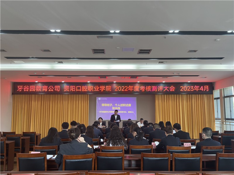 會上,牙谷園教育公司董事長、資陽口腔職業(yè)學院黨委書記、理事長張中偉代表班子作2022年度領(lǐng)導班子述職報告。學院領(lǐng)導班子成員依次作個人述職述廉報告。與會人員在認真聽取各項報告后,對學院領(lǐng)導班子及成員政治素質(zhì)、經(jīng)營能力、團結(jié)協(xié)助、作風形象等方面進行了民主測評。