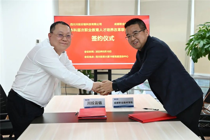 5月10日,川投信產(chǎn)所屬四川川投云鏈科技有限公司與成都職業(yè)技術學院(以下簡稱“成職院”)校企合作簽約儀式在川投云鏈成功舉辦。成職院財經(jīng)學院副院長徐勇(主持工作)、川投云鏈總經(jīng)理封飛等出席簽約儀式。至此,成都大學、成職院與川投云鏈三方正式開啟了校企協(xié)同育人新篇章。