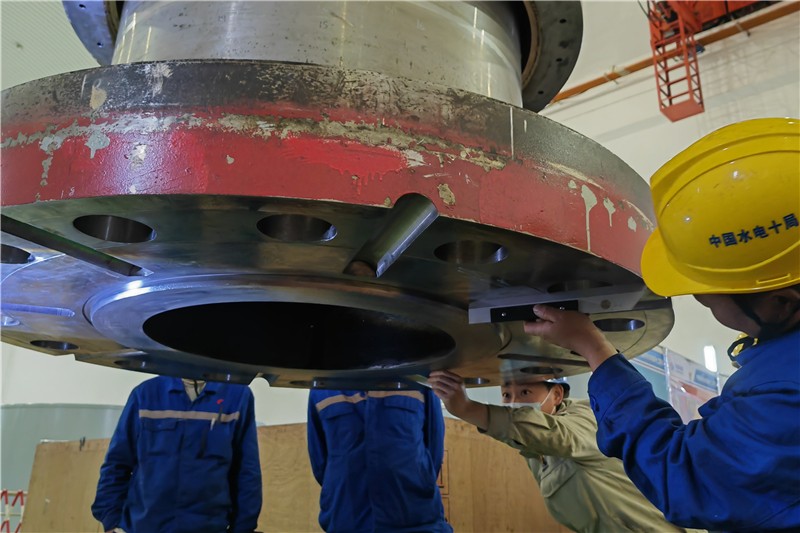 作為水輪發(fā)電機組的核心部件之一,轉子檢修質(zhì)量的好壞,直接影響發(fā)電機組整體質(zhì)量,也關系著機組整體檢修進度。為確保轉子吊裝安全有序,5月12日上午10時,監(jiān)理組組織監(jiān)理工程師配合大修單位專業(yè)人員,對橋機起重系統(tǒng)、電源和控制系統(tǒng)進行了仔細檢查,并按分項驗收要求對轉子進行了三級驗收。5月12日下午13時18分,經(jīng)監(jiān)理組同意,在“三起三落”的試探性起吊后,發(fā)電機轉子從安裝間專用支架上緩緩升起,檢修人員對轉子法蘭面進行了仔細清理。13時32分,轉子移至發(fā)電機定子上方,大修工作迎來了轉子吊入基坑關鍵時刻:隨著轉子的緩緩下降,負責發(fā)電機空氣間隙插板的監(jiān)察人員,不停上下拉動木板條,嚴密監(jiān)察空氣間隙,隨時做好定、轉子防護工作;起重指揮人員積極收集各方傳達的反饋信息并及時作出調(diào)整轉子起吊中心的操作指令;操作人員認真核對操作指令,冷靜做出相應操作。14時20分,在監(jiān)理組和大修單位的共同努力下,轉子平穩(wěn)吊入發(fā)電機基坑,并精準對接轉輪法蘭,自此,仁宗海電站2號機組進入了全面回裝階段。