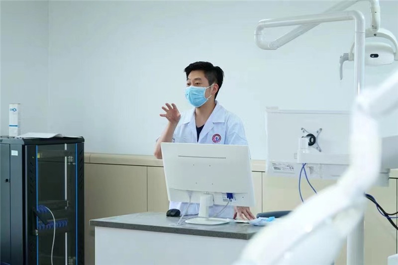 在實(shí)踐環(huán)節(jié),蔣禮醫(yī)生利用3D口內(nèi)掃描儀與同學(xué)們進(jìn)行了互動體驗(yàn),并在虛擬仿真口腔技能訓(xùn)練機(jī)上實(shí)踐操作,用最新的教育教學(xué)手段,讓同學(xué)們對口腔醫(yī)學(xué)有了全新的認(rèn)識。