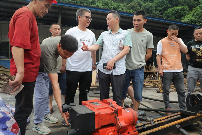 培訓(xùn)由煤礦核算組牽頭組織,50余名掘進崗位職工和礦辦科室掘進技術(shù)管理人員分5批在兩個會議室和工業(yè)廣場接受理論和實操循環(huán)培訓(xùn)。雷管起爆控制器由生產(chǎn)技術(shù)科科長潘剛主講,梳理控制器收發(fā)與領(lǐng)用、井下使用注意事項、控制器的保養(yǎng)與維修、性能參數(shù)與校驗等內(nèi)容,以提升領(lǐng)取、使用和日常維護控制器的崗位人員標(biāo)準(zhǔn)操作意識,規(guī)范工作流程。通風(fēng)科技術(shù)員楊軒從鉆機型號及鉆機架構(gòu),鉆孔方位角、傾角的確定,防噴裝置的作用及安裝要求,鉆孔封孔工藝要求等方面講解了鉆機實用操作知識,指出注意事項。培訓(xùn)外請了重慶大學(xué)的鄒德均博士來礦傳經(jīng)送寶,從煤礦巷道錨桿支護支護演化歷程,與錨桿支護有關(guān)的《規(guī)范》,煤礦巷道錨桿支護理論的缺陷,煤礦巷道錨桿支護、現(xiàn)場施工和錨桿支護監(jiān)測存在的問題及解決辦法等方面解答職工疑問。