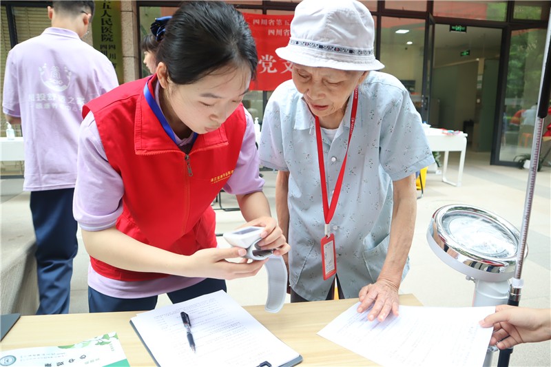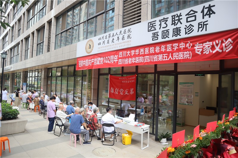 開(kāi)業(yè)當(dāng)天,為慶祝建黨102周年,弘揚(yáng)偉大建黨精神,四川大學(xué)華西醫(yī)院老年醫(yī)學(xué)中心、四川省老年醫(yī)院的多名專(zhuān)家在現(xiàn)場(chǎng)開(kāi)展“迎接中國(guó)共產(chǎn)黨建黨102周年”主題的健康義診活動(dòng),為長(zhǎng)者提供健康診療、老年病評(píng)估、中醫(yī)診脈服務(wù),并向長(zhǎng)者科普疾病預(yù)防、健康管理及心理衛(wèi)生等方面知識(shí)。