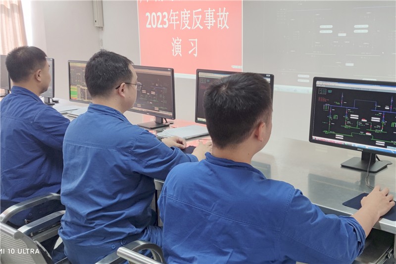 本次演練模擬雙機滿負荷運行時脫硫6KV I段因進線電源電纜故障引起6KV I段母線失電事故?!皡R報值長,脫硫6KV I段母線失壓,原因尚未查明,6KV I段所屬設備全部跳閘,需要立即降低1、2號機組負荷配合進行事故處理?!彪S著一陣急促的聲音響起,事故演練正式開始。演練開始后,脫硫主值班員立即著手進行事故處理,匯報值長請求支援,通知檢修及時到位,安排副值班員重點監(jiān)視好2號機脫硫及尿素區(qū)運行狀況,令巡檢積極配合檢修人員就地查找原因并做好現(xiàn)場設備的巡視檢查,在保障1號機組安全運行的同時,保證2號機組環(huán)保參數(shù)達標排放。演練人員各司其職,沉著應對,將事故影響控制在最小范圍,避免事故的進一步擴大。