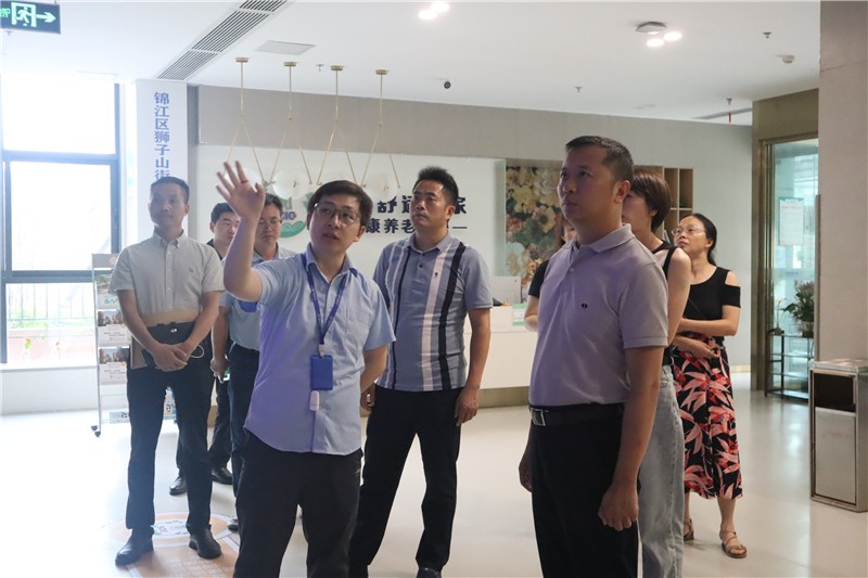 2023年7月11日,錦江區(qū)副區(qū)長萬科,錦江區(qū)民政局養(yǎng)老服務(wù)指導中心主任楊麗娜,錦江區(qū)獅子山街道辦事處主任肖建光一行到錦江區(qū)獅子山街道社區(qū)養(yǎng)老服務(wù)綜合體(川投舒適之家·頤康養(yǎng)老中心)調(diào)研。