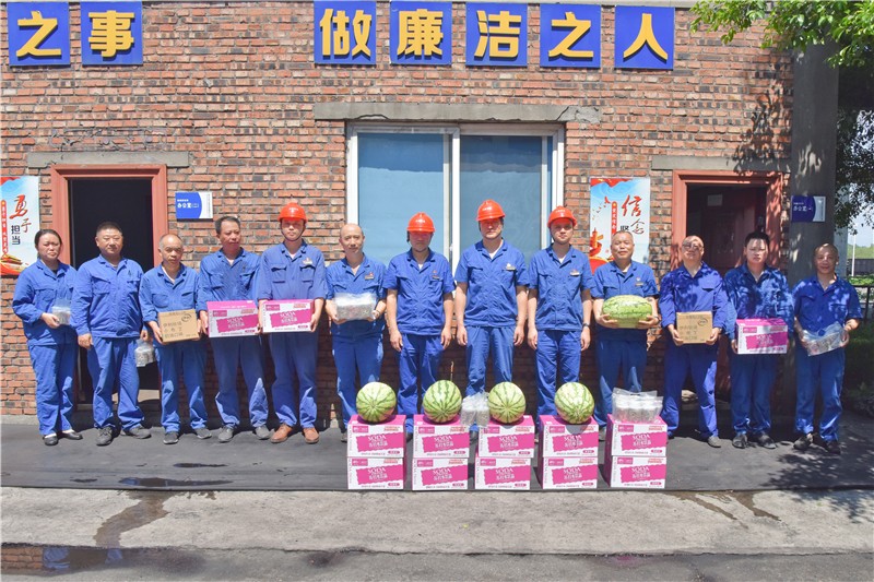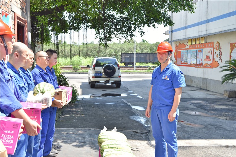 近日來(lái),瀘州地區(qū)持續(xù)高溫天氣,8月9日、10日連續(xù)兩天最高氣溫均超過(guò)了35℃。為持續(xù)做好現(xiàn)場(chǎng)員工防暑降溫工作,8月10日下午14時(shí)30分,公司黨委書記、董事長(zhǎng)劉勝金帶隊(duì)到生產(chǎn)現(xiàn)場(chǎng)開展“送清涼”慰問(wèn)活動(dòng)。