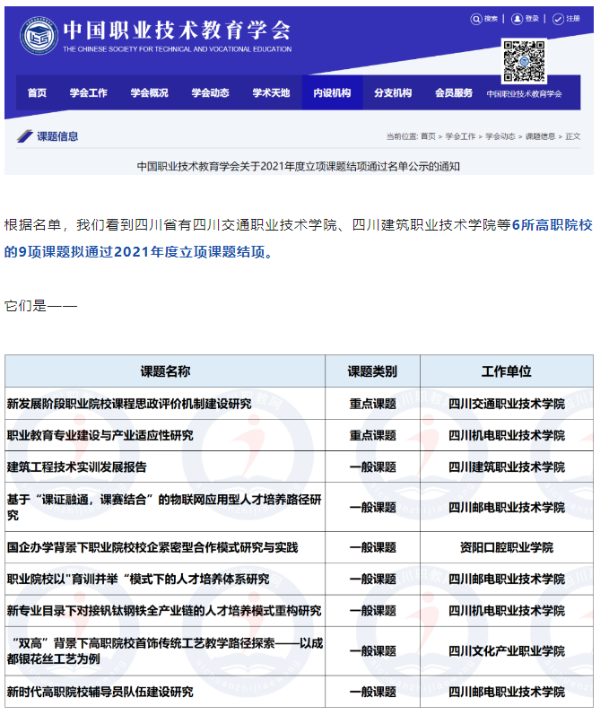 近日,中國職業(yè)技術(shù)教育學(xué)會(huì)發(fā)布了關(guān)于2021年度立項(xiàng)課題結(jié)項(xiàng)通過名單公示的通知。由學(xué)院教學(xué)事務(wù)部部長張超申報(bào)的《國企辦學(xué)背景下職業(yè)院校校企緊密型合作模式研究與實(shí)踐》擬通過2021年度立項(xiàng)課題結(jié)項(xiàng)。