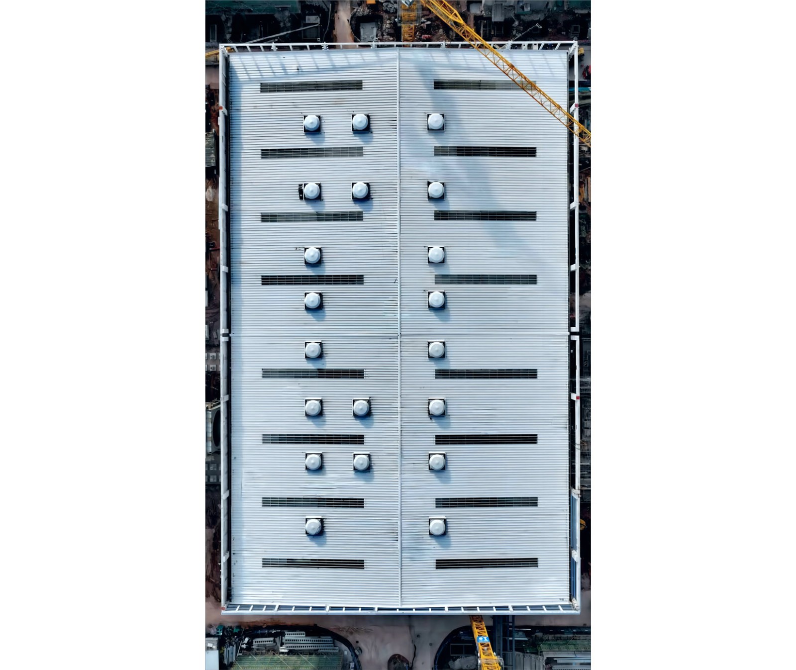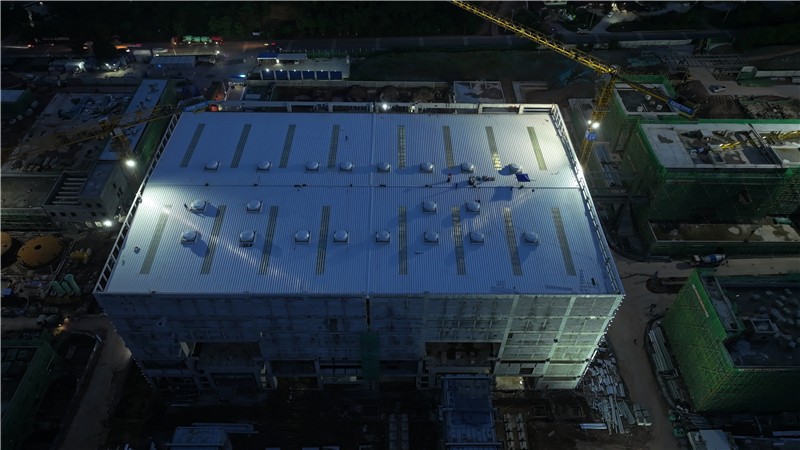 2023年8月28日11時38分,資陽燃氣電站主廠房屋面全面止水,為后續(xù)機島設備安裝提供有利條件。