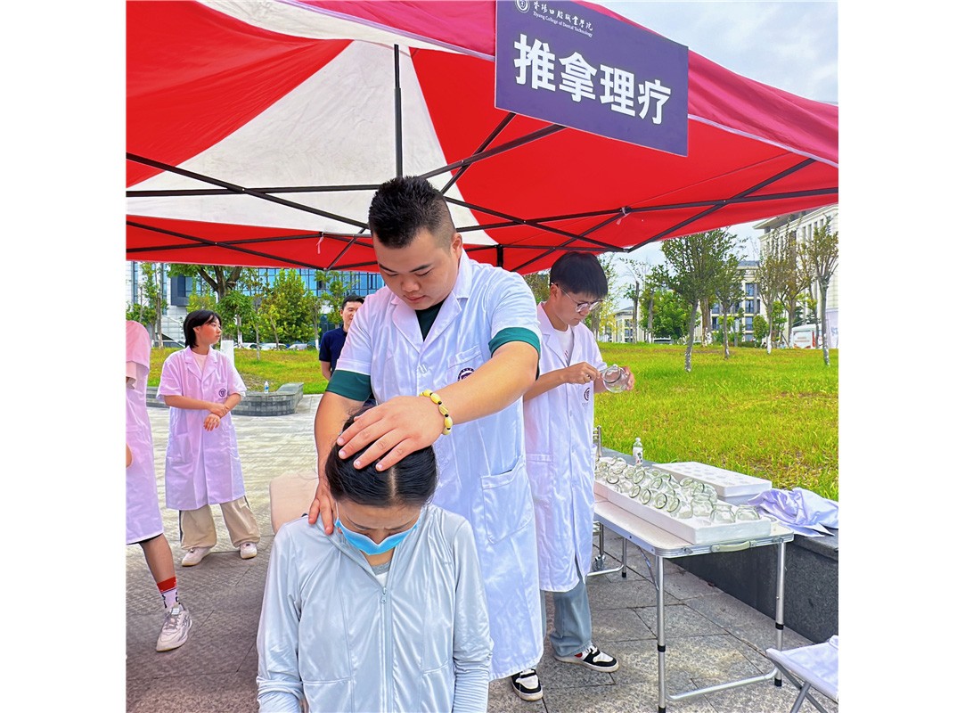 “這里疼嗎?平時(shí)要改掉一直低頭玩手機(jī)的習(xí)慣,肩頸位置也要注意保暖?!敝笇?dǎo)老師對(duì)家長的健康情況進(jìn)行問詢,并通過專業(yè)的推拿手法緩解肩頸不適等癥狀?,F(xiàn)場,師生們向大家普及口腔健康知識(shí),提升“愛牙護(hù)牙”的意識(shí),充分展現(xiàn)出學(xué)院服務(wù)口腔和大健康產(chǎn)業(yè)的專業(yè)優(yōu)勢(shì),贏得新生和家長一致認(rèn)可。