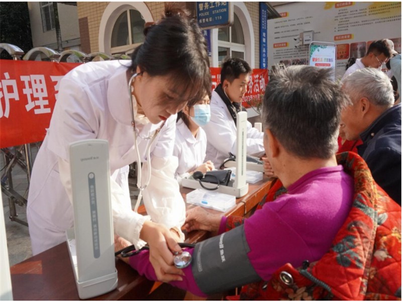 為提高社區(qū)居民預(yù)防疾病意識(shí),引導(dǎo)大家養(yǎng)成良好的生活習(xí)慣,學(xué)院護(hù)理系結(jié)合自身專業(yè)特點(diǎn),10月28日,護(hù)理系教師帶領(lǐng)18名志愿者在市高新區(qū)獅子山街道辦嬌子社區(qū),為社區(qū)居民開展測(cè)量血壓、推拿按摩等多項(xiàng)志愿服務(wù)項(xiàng)目,并進(jìn)行健康宣講普及。