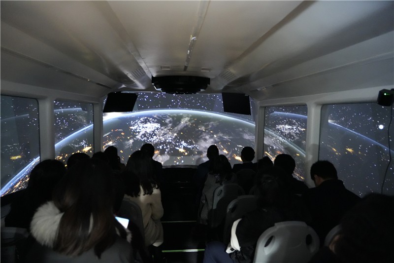 專題培訓結束后,與會嘉賓來到成都七重空間大國重器互動體驗館,分組體驗和操控“深空、航天、地面、水面、水下、虛擬”七個空間維度的專用裝備,身臨其境駕駛飛機,在高鐵駕駛艙感受“中國速度”,在海南新島切身體驗“填海造島”,一秒穿越盛唐感受成都繁華市井生活……嘉賓們遨游在虛實共生的科技世界,切身感受虛擬現(xiàn)實、增強現(xiàn)實以及視覺融合技術等文旅體驗新模式。