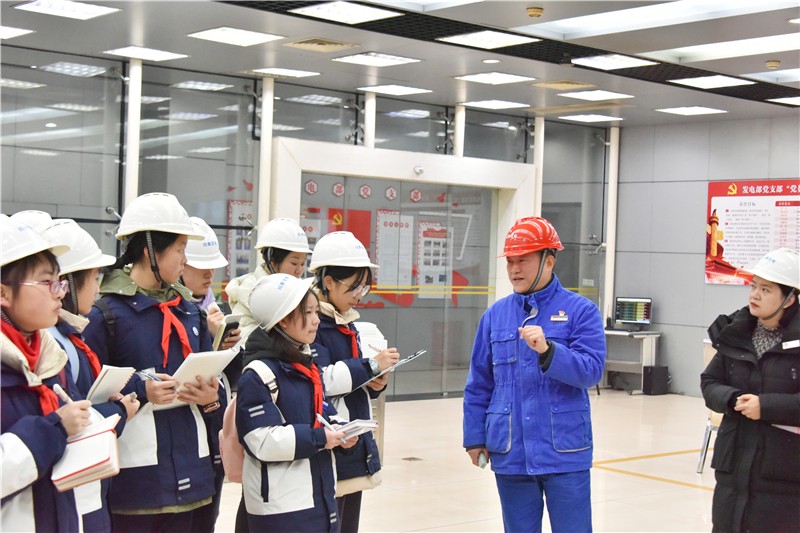 1月25日上午,瀘州市龍馬高中初2022級(jí)致遠(yuǎn)中隊(duì)環(huán)保小隊(duì)11人走進(jìn)公司開(kāi)展“探索城市動(dòng)力之源 共建瀘州碧水藍(lán)天”主題研學(xué),近距離感受現(xiàn)代化大型火力發(fā)電廠的生產(chǎn)及環(huán)保工作。公司副總經(jīng)理張劍平全程講解,黨群工作部、綜合管理部相關(guān)人員協(xié)助做好研學(xué)團(tuán)隊(duì)的安全監(jiān)護(hù)。