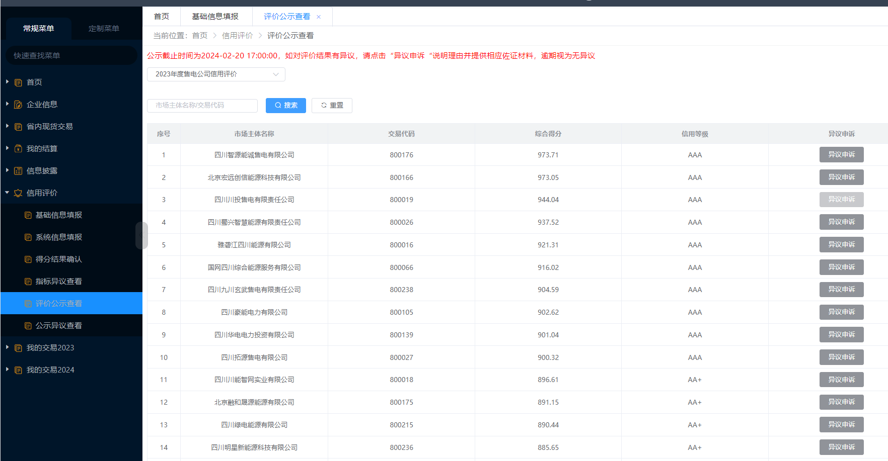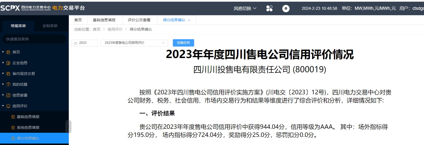 四川售電公司信用評價,是四川電力交易中心按照《2023年四川售電公司信用評價實施方案》(川電交〔2023〕12號),從財務(wù)狀況、社會信用、運營能力、服務(wù)能力、交易能力、履約能力等方面對符合條件的售電公司市場參與能力和風(fēng)險情況進(jìn)行全面評價。AAA 信用等級,是全省對售電公司的最高榮譽(yù),更是彰顯售電公司綜合能力的最高標(biāo)準(zhǔn)。川投售電公司榮獲2023年AAA最高信用等級不僅展現(xiàn)了公司在行業(yè)中強(qiáng)大的綜合實力,也反映了管理機(jī)構(gòu)對川投售電公司客戶服務(wù)能力、規(guī)范運作水平等方面的高度認(rèn)可和充分肯定。