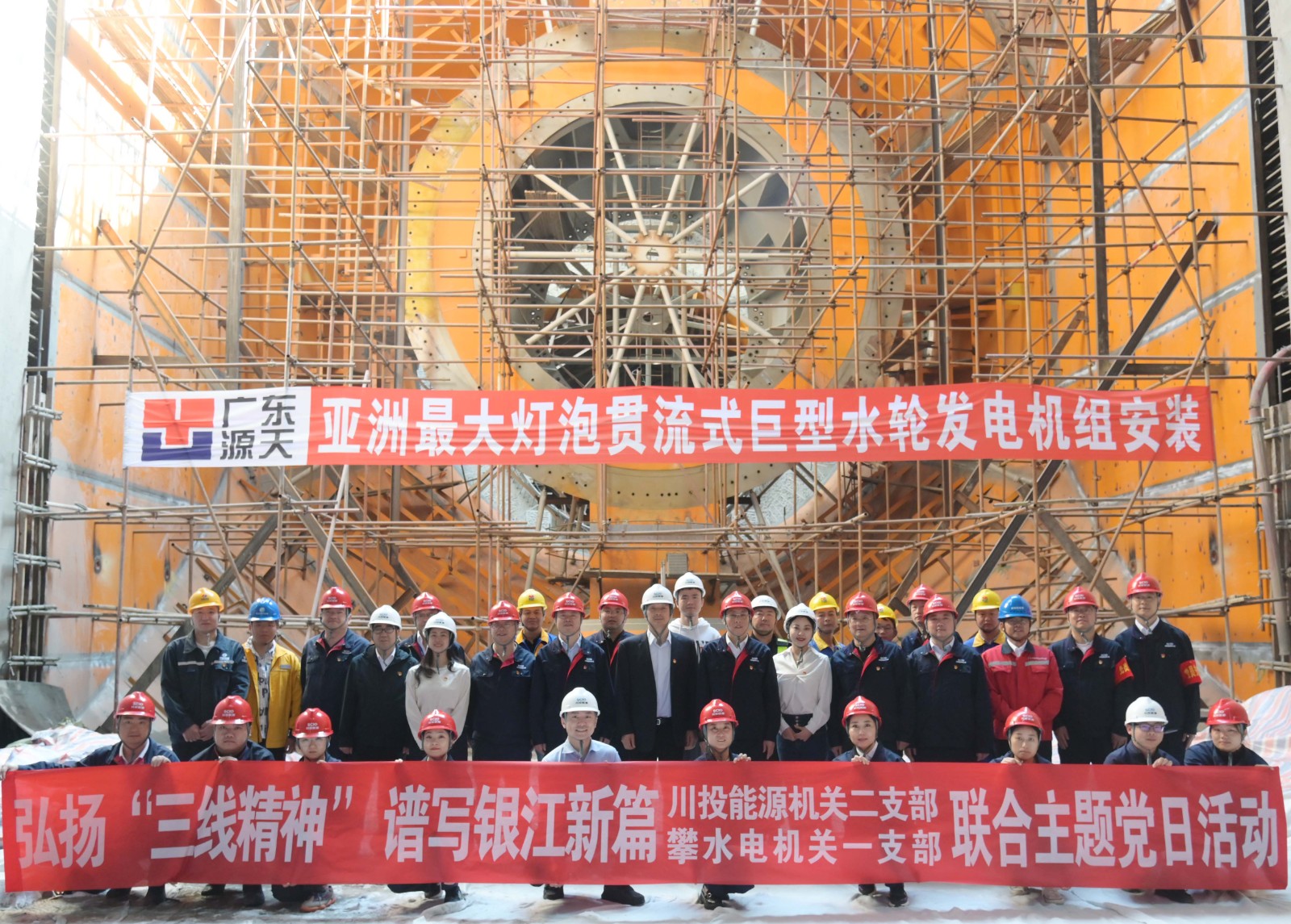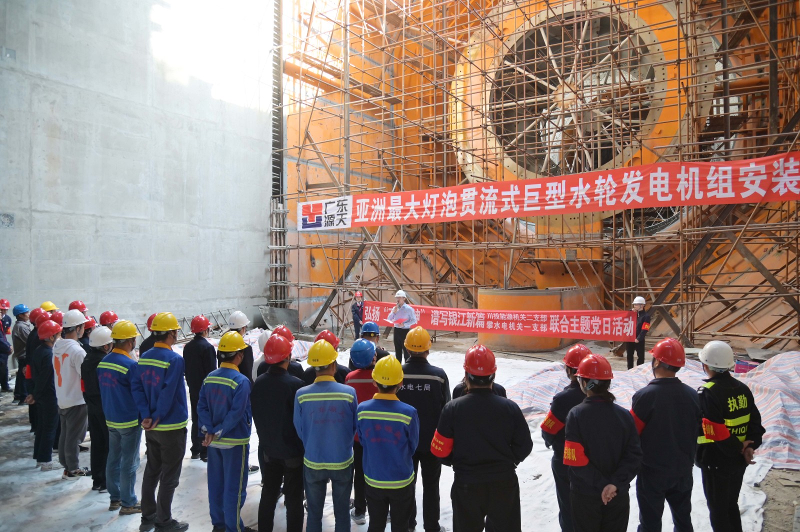在銀江水電站亞洲最大燈泡貫流式巨型水輪發(fā)電機(jī)組安裝現(xiàn)場,川投能源機(jī)關(guān)二支部書記李睿講授了工地微黨課《承諾》,與大家一起重溫銀江水電站建設(shè)過程中的感人故事。活動中,徐孝剛用通俗易懂的語言,為現(xiàn)場同志介紹了銀江水電站的建設(shè)特點(diǎn)、施工情況和下一步工程建設(shè)計(jì)劃,并號召全體黨員和團(tuán)員青年要圍繞“保一爭二”提前發(fā)電重要目標(biāo),團(tuán)結(jié)一心、勇挑重?fù)?dān)、善作善成。