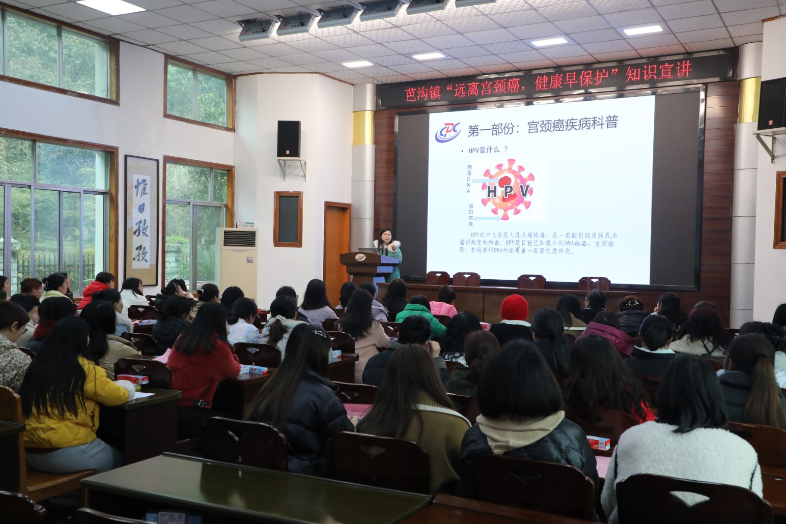 3月4日上午,犍為縣疾控中心免規(guī)科科長(zhǎng)黎燕為女職工們開展宮頸癌疾病健康知識(shí)講座,詳細(xì)講解了宮頸癌疾病的危害以及主要癥狀、特點(diǎn),并講述了自我檢查、自我預(yù)防的基本方法等相關(guān)知識(shí)。提醒廣大女職工要加強(qiáng)自我保護(hù)和健康意識(shí),做到早預(yù)防、早發(fā)現(xiàn)、早治療。芭溝鎮(zhèn)衛(wèi)生院相關(guān)醫(yī)護(hù)人員介紹了如何接種HPV疫苗等相關(guān)問題。通過此次講座,讓女職工們進(jìn)一步了解了基本的健康知識(shí),激發(fā)了大家對(duì)自身健康的關(guān)注度,進(jìn)一步增強(qiáng)了自我保護(hù)意識(shí)。