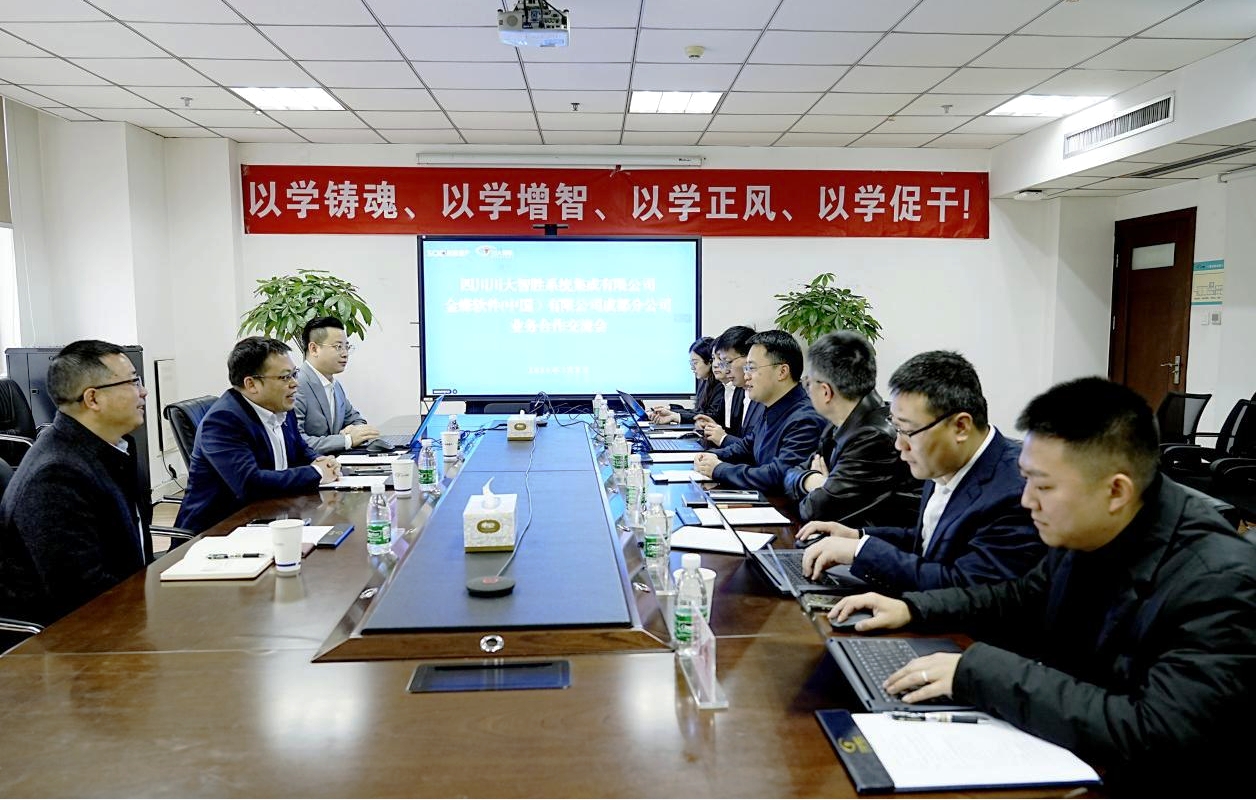 近日,四川金蝶軟件有限公司一行應(yīng)邀到訪川投信產(chǎn)所屬智勝集成開展業(yè)務(wù)交流會。